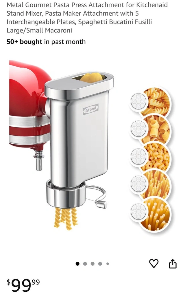 Metal Gourmet Pasta Press Attachment for Kitchenaid Stand Mixer, Pasta Maker Attachment with 5 Interchangeable Plates, Spaghetti Bucatini Fusilli Large/Small Macaroni. Pickup in Barrhaven.