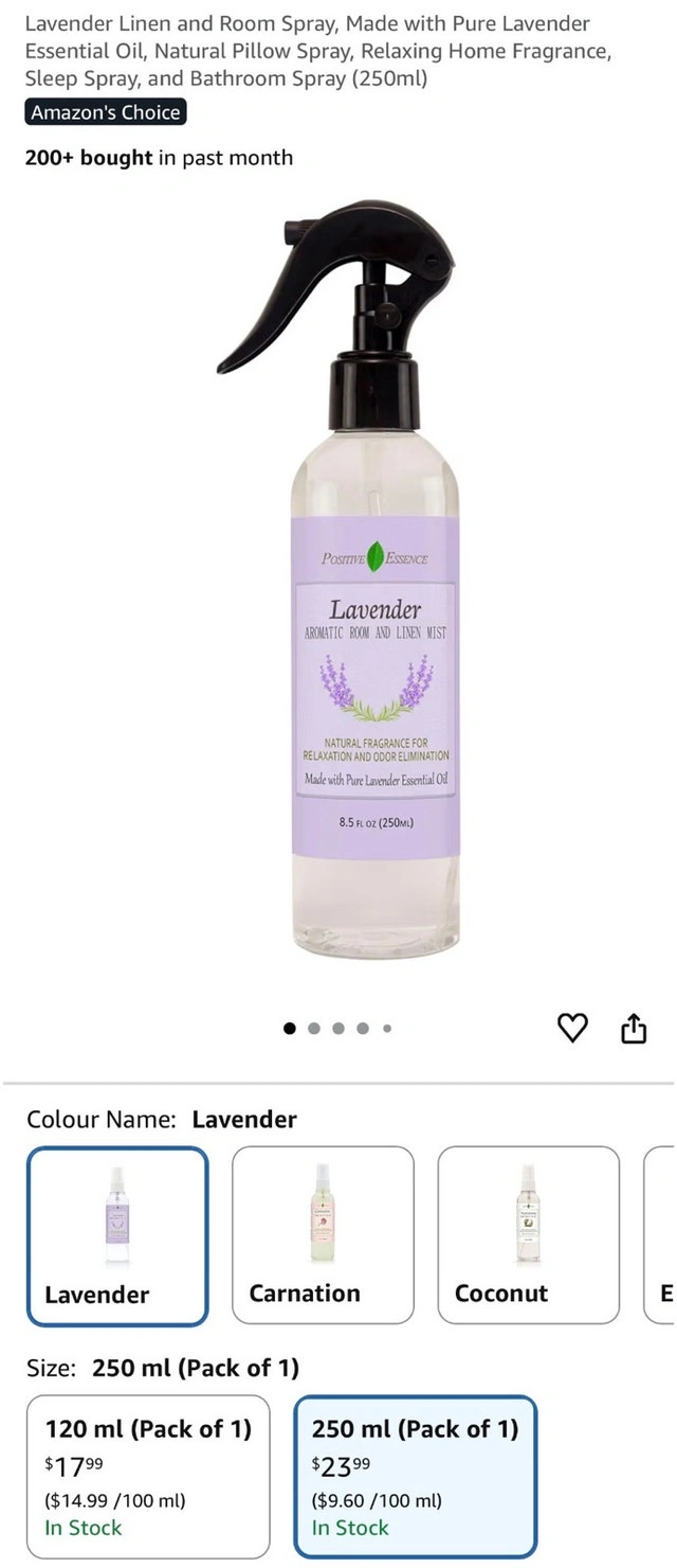 New Pure Essence Lavender linen and room spray with natural lavender essential oils, in a 250ml bottle. Perfect for relaxing home fragrance, sleep spray, and bathroom spray. Made with Pure Lavender Essential Oil. This spray smells divine! If the ad is still up, it's still available.