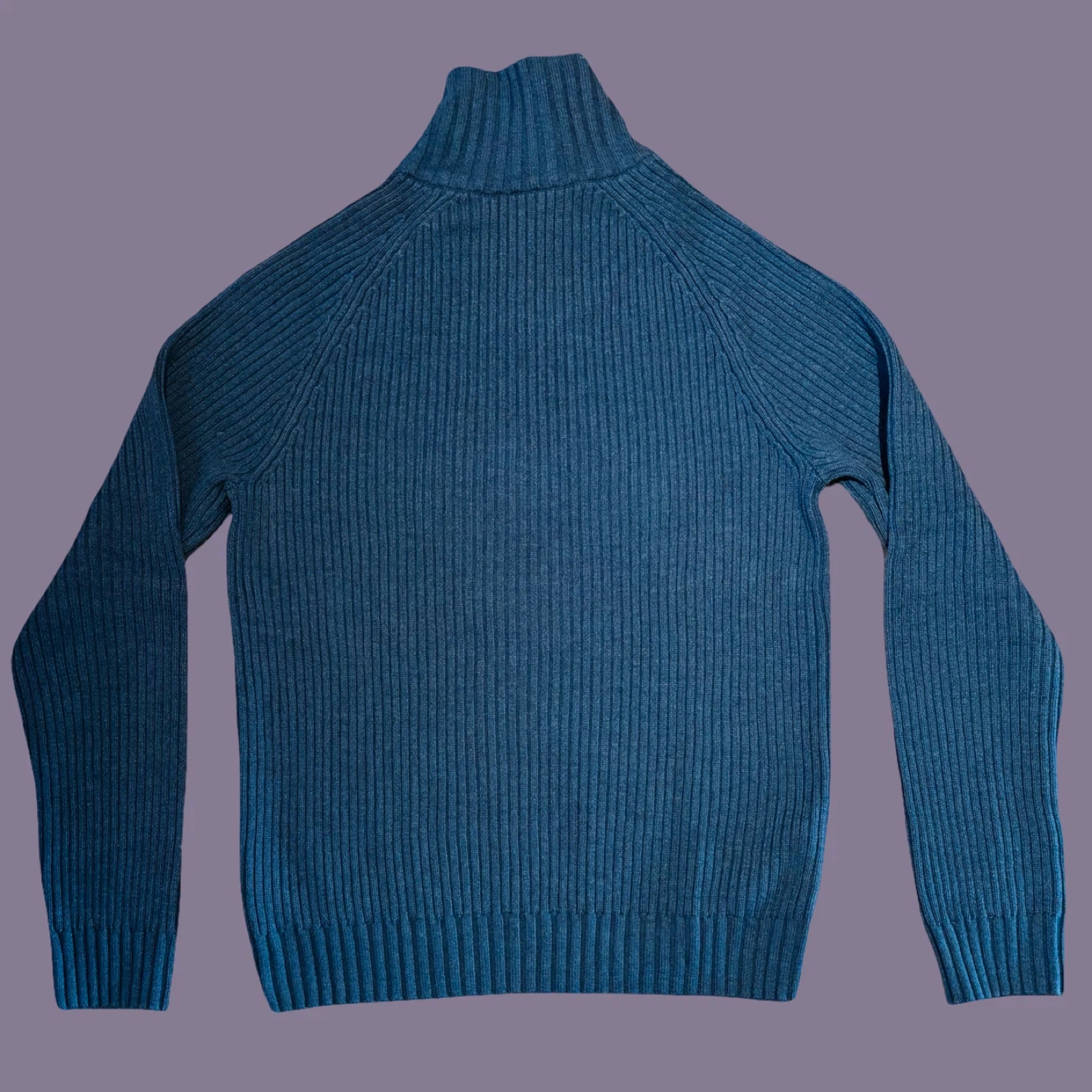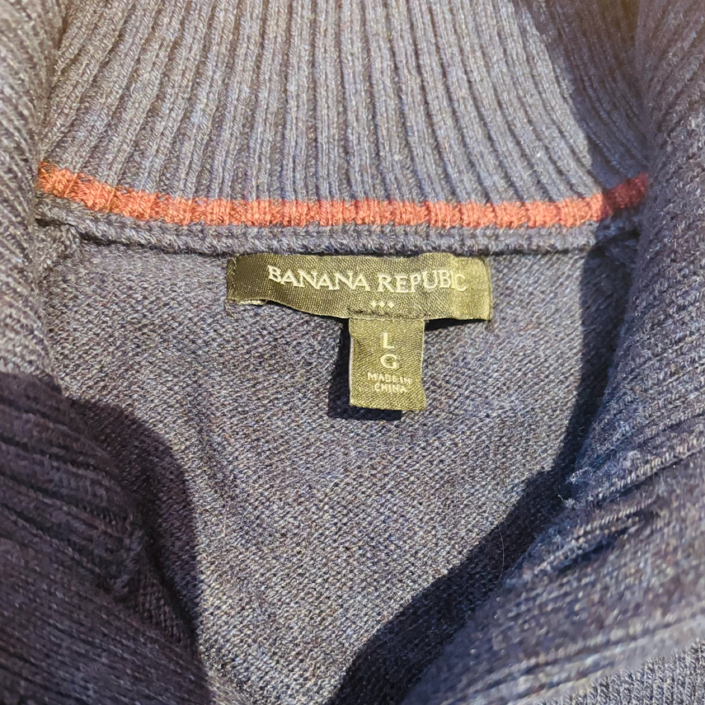 A large blue/grey, ribbed, turtleneck sweater from Banana Republic. Made of a soft comfy knit material. Check out my other listings! (Pet/smoke-free home)