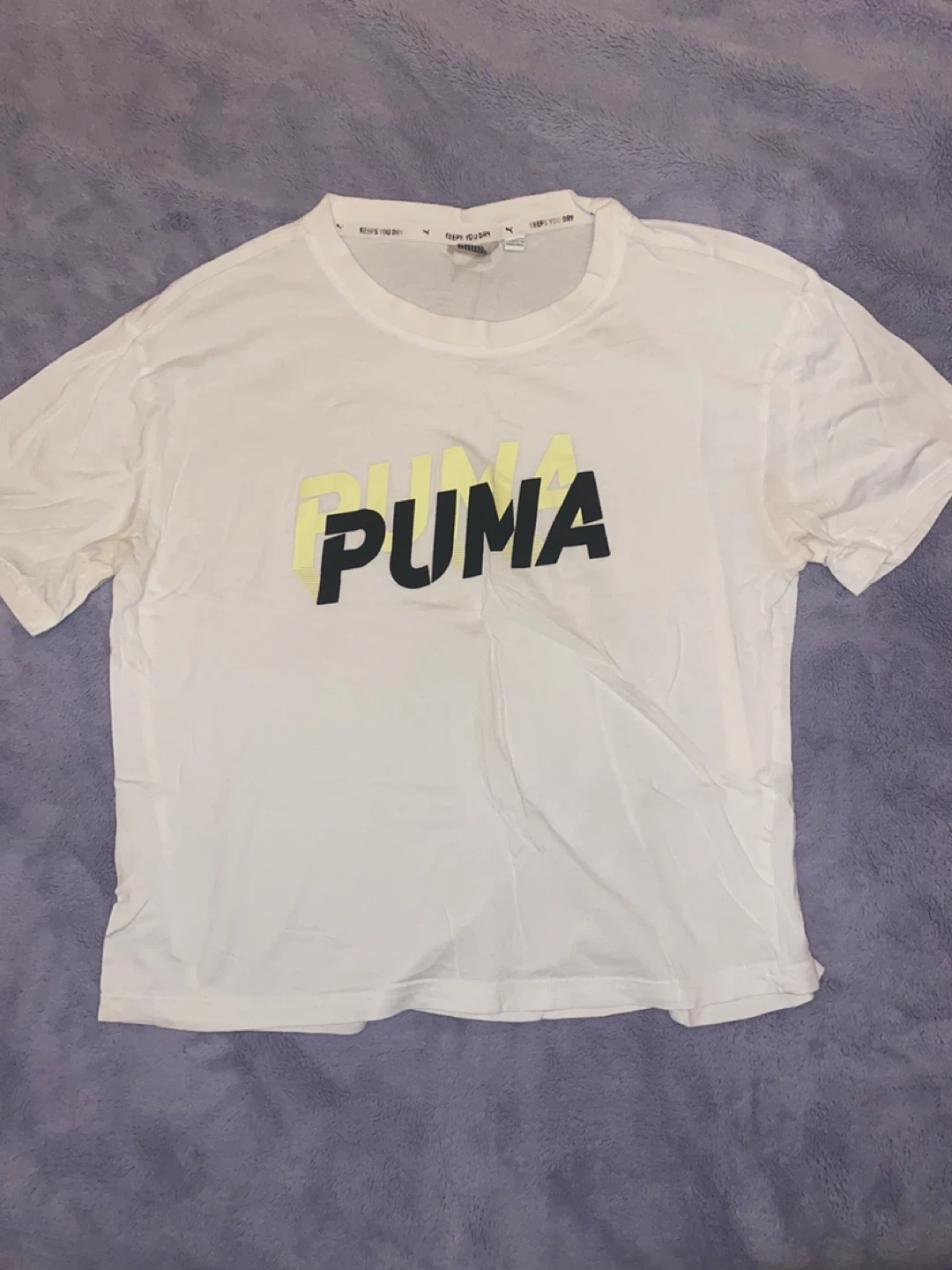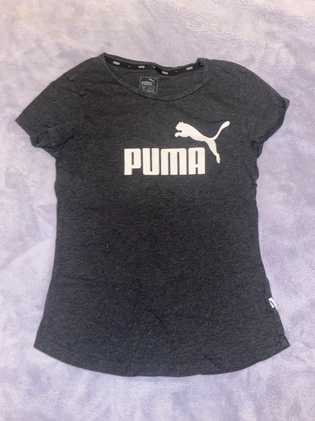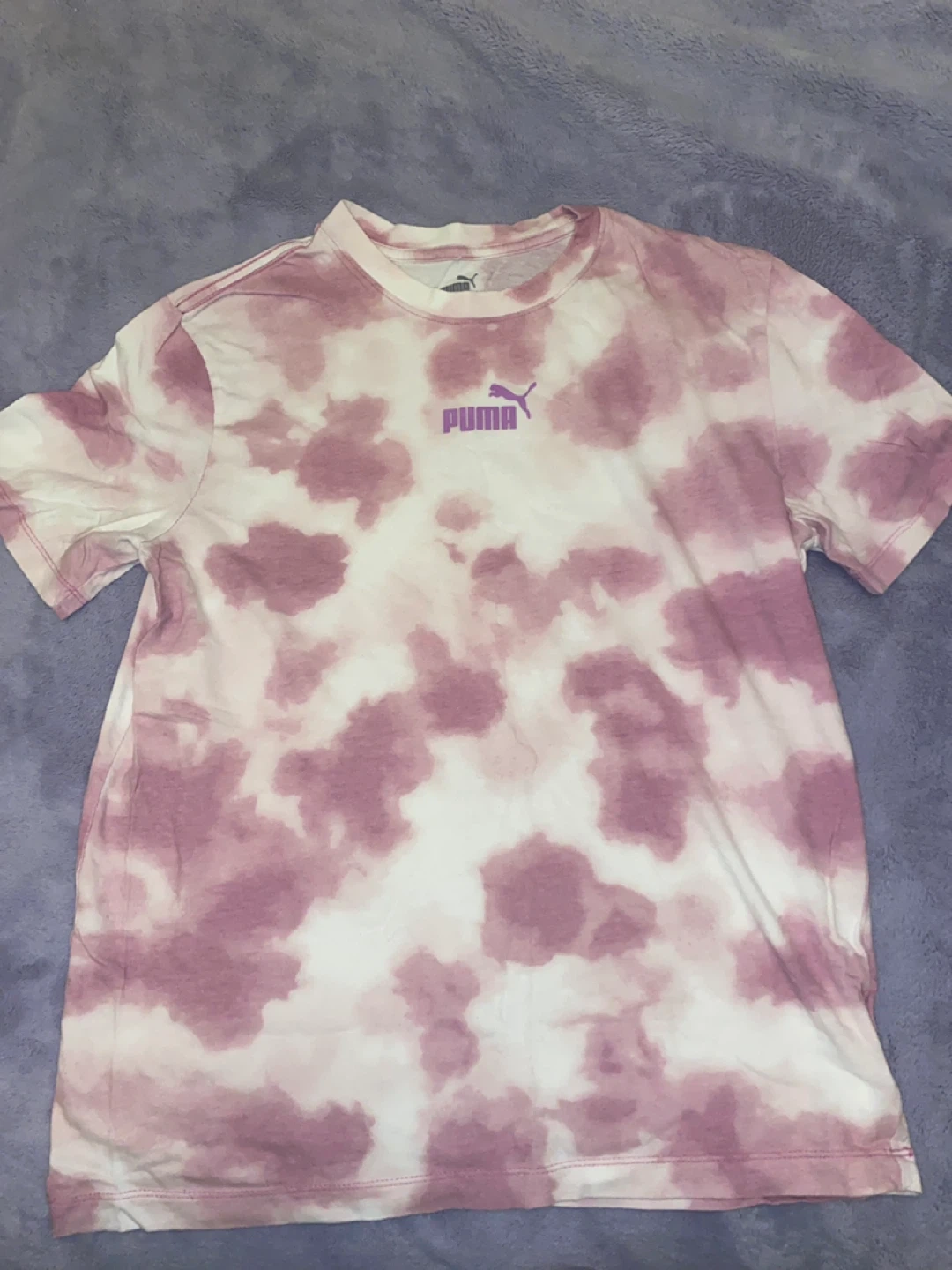 This bundle includes six women’s S/M Puma t-shirts in various colours and designs. You'll get a dark grey t-shirt with a large Puma logo, a white t-shirt with a yellow and black Puma logo, a lime green t-shirt with a white Puma logo, a white t-shirt with a subtle embossed Puma logo, and two tie-dye t-shirts (one pink/purple, one yellow/green). Perfect for casual wear or athletic activities!