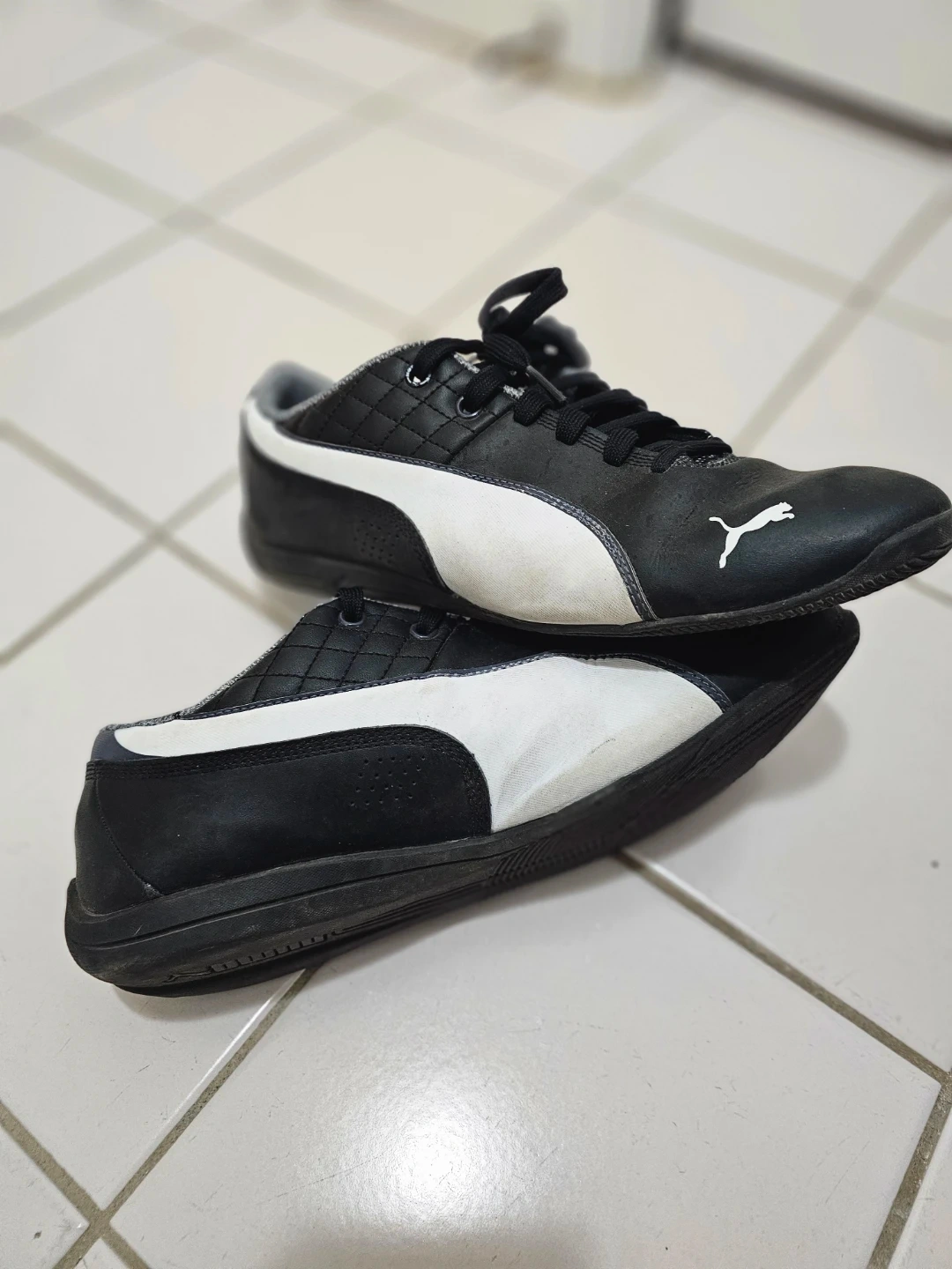 Selling a pair of Puma sneakers in black. They are in used condition, showing some signs of wear. No box. It is men size is US 10.5 / CDN 10.5.