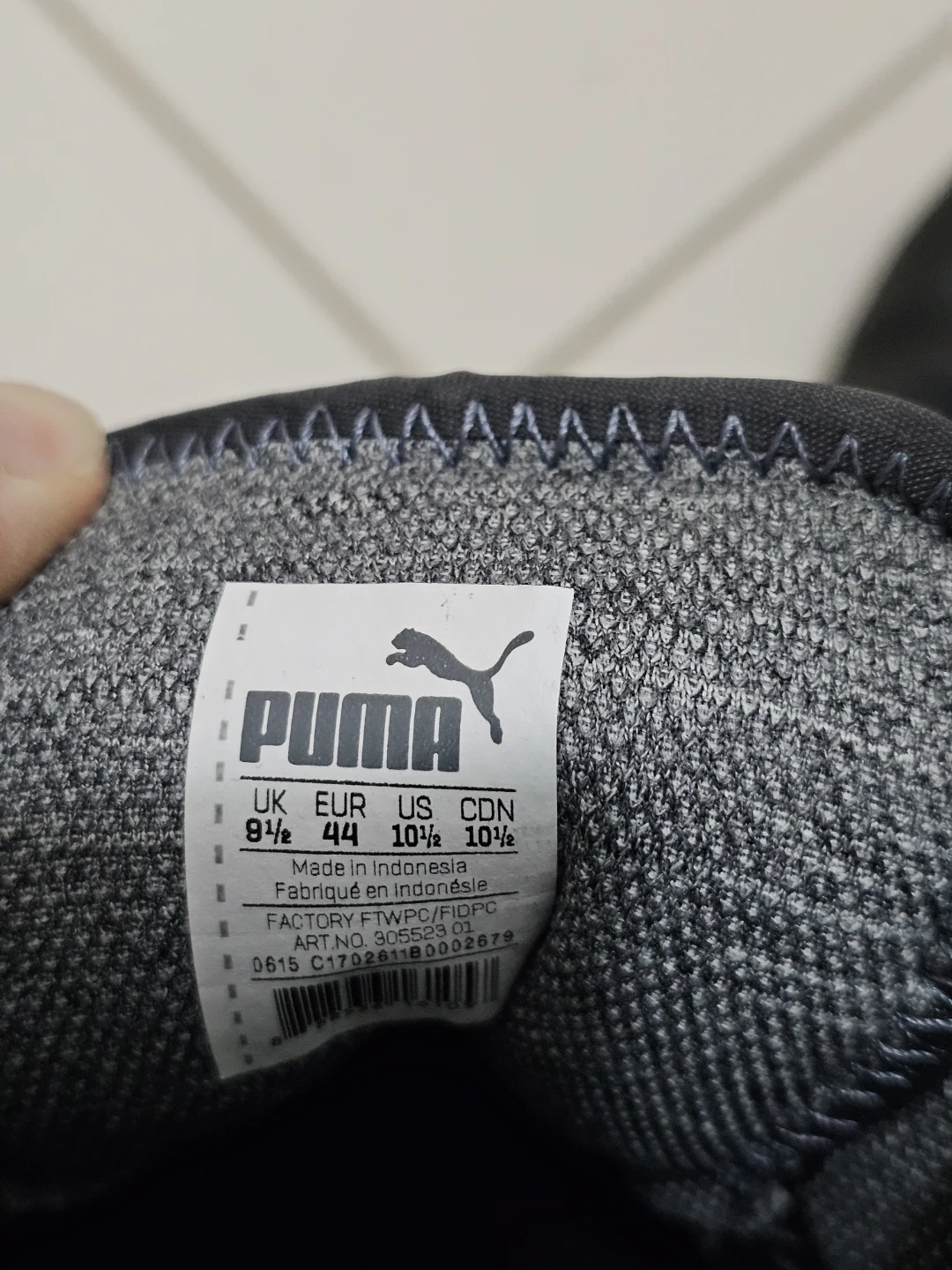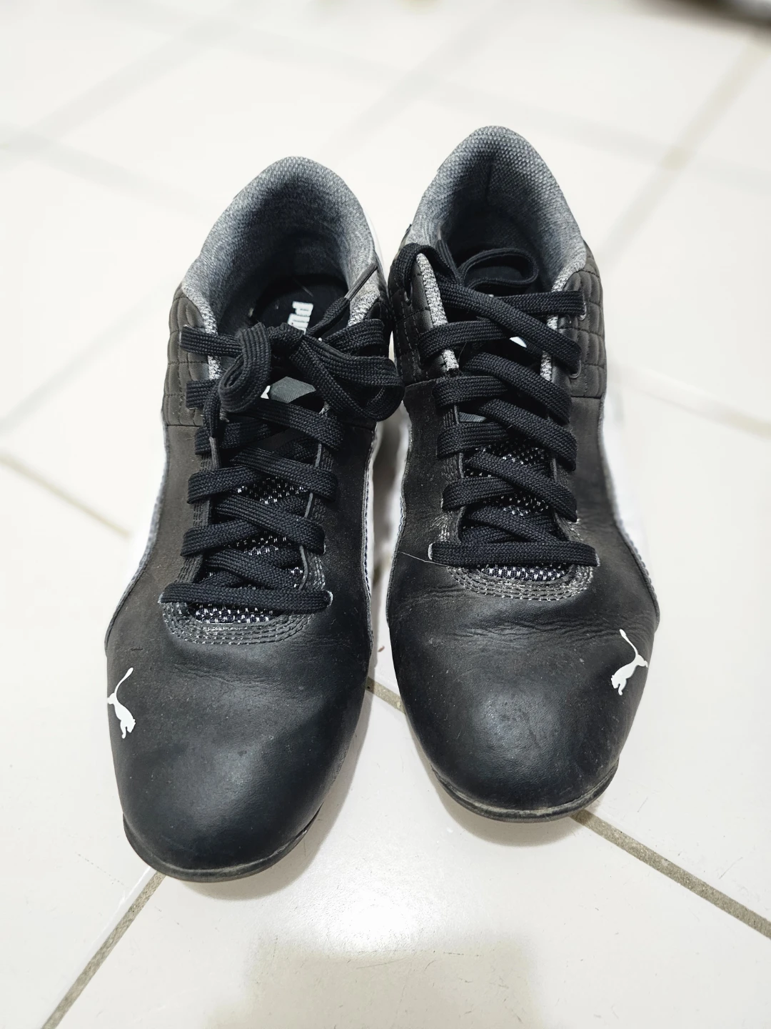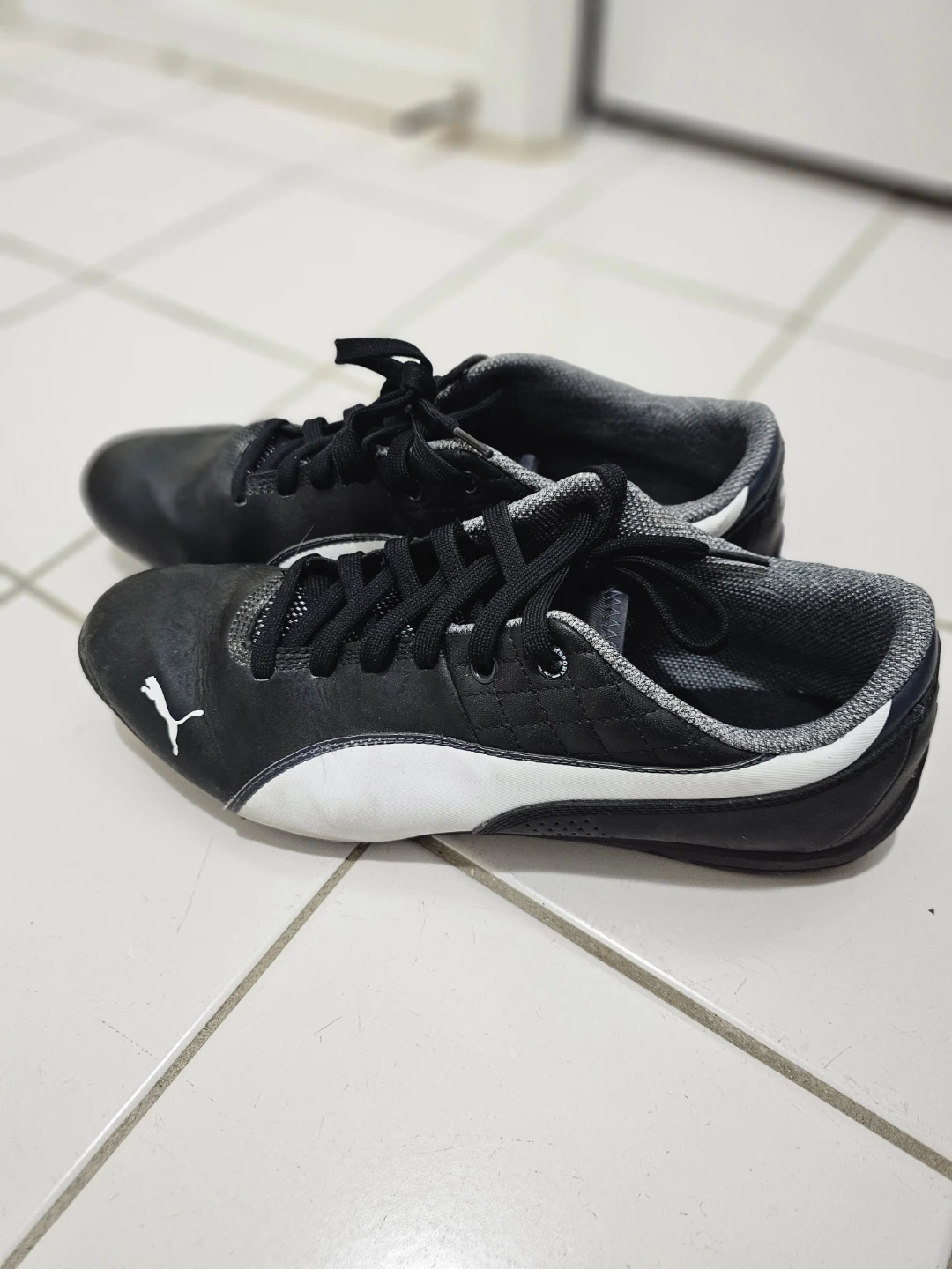 Selling a pair of Puma sneakers in black. They are in used condition, showing some signs of wear. No box. It is men size is US 10.5 / CDN 10.5.