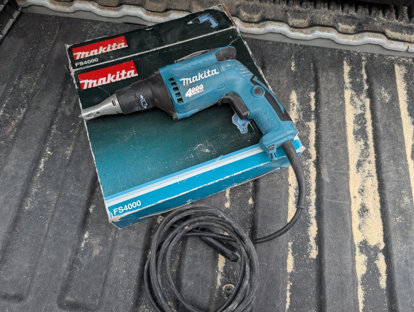 Selling a Makita FS4000 screwdriver. It comes with the original box. Great for drywall and other fastening tasks! The screwdriver is in good working condition.