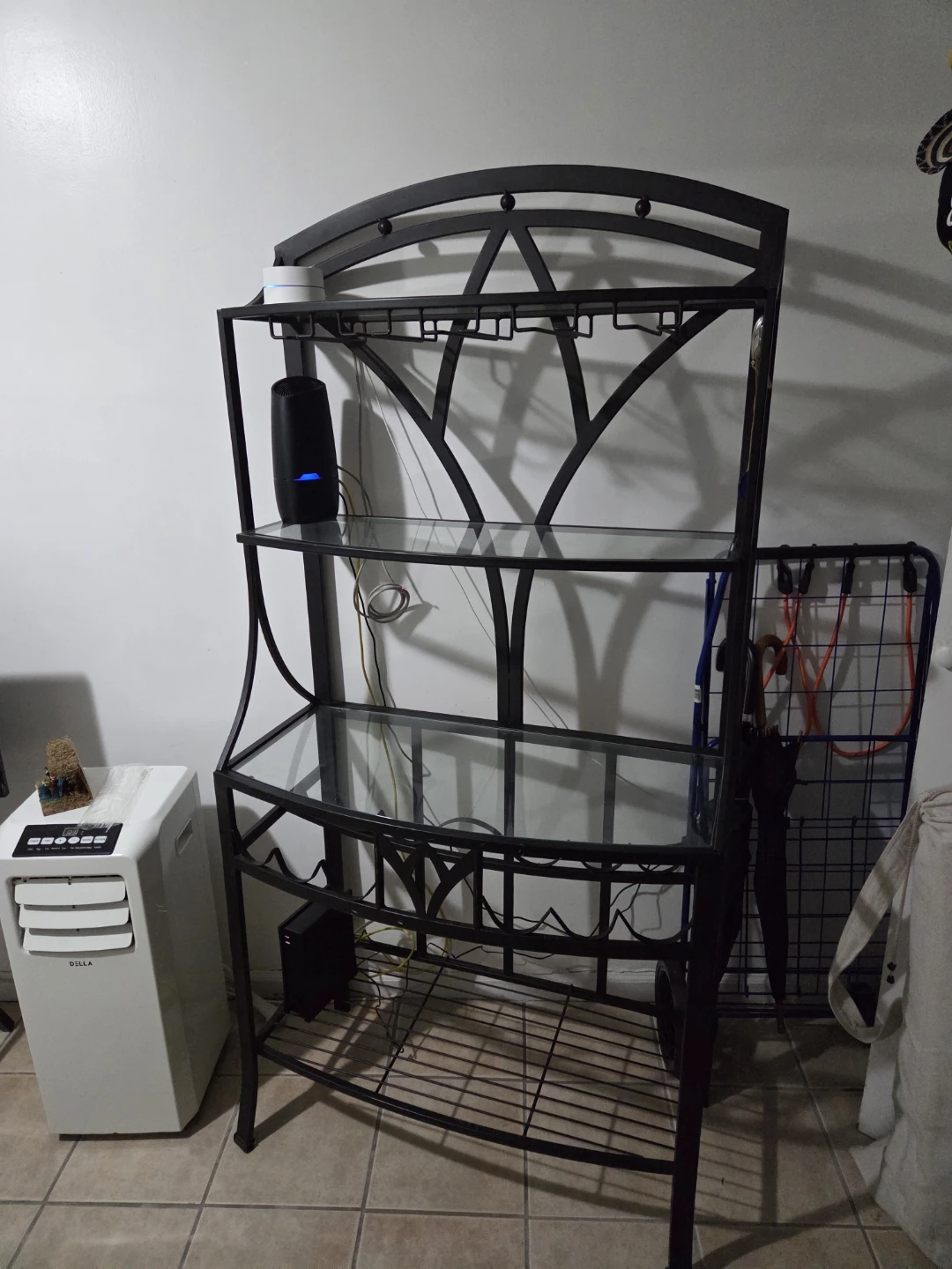 Wrought Iron Baker's Rack with Glass Shelves