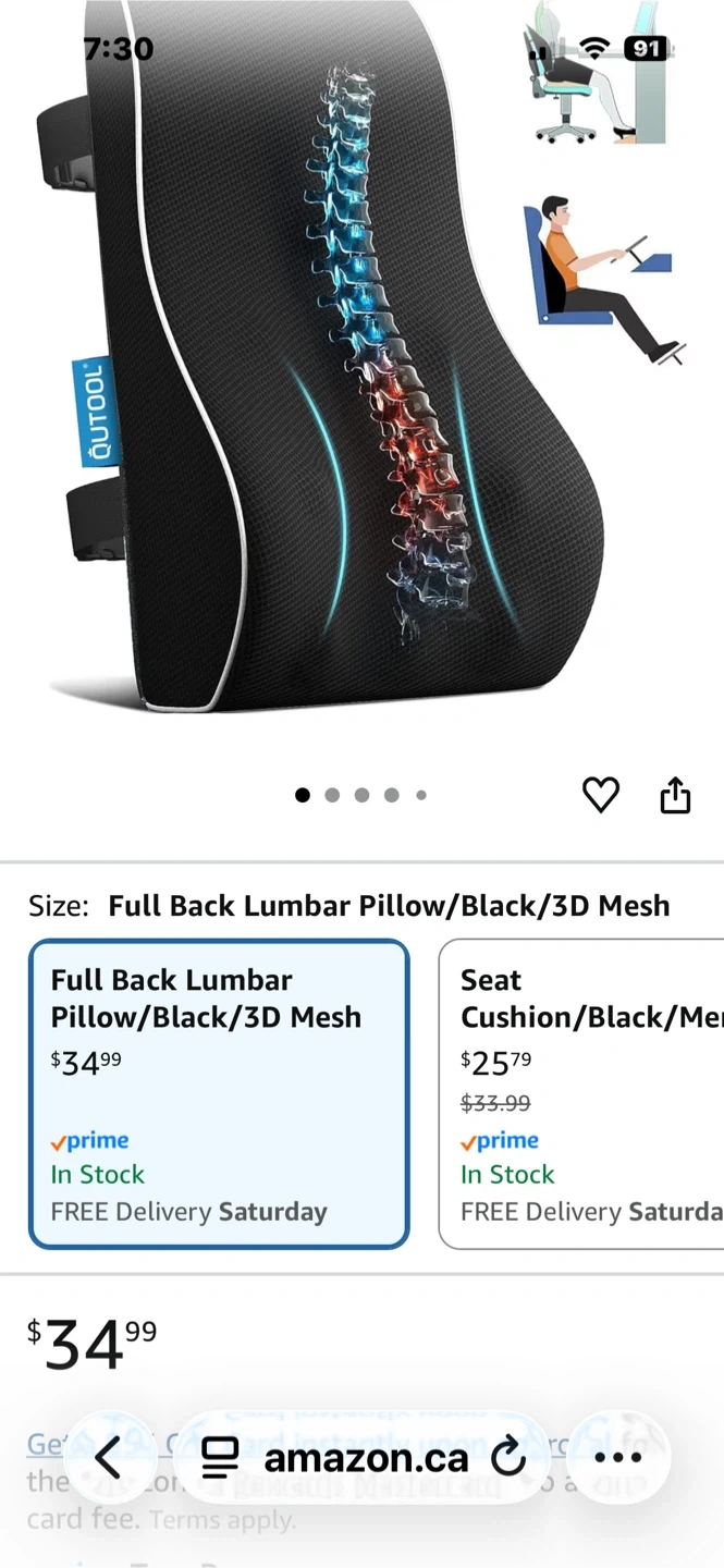 This Qutool lumbar pillow is designed for full back support. It's made with breathable 3D mesh material for comfort. The ergonomic design helps maintain good posture while sitting. Ideal for use in an office chair or car seat. Barley used