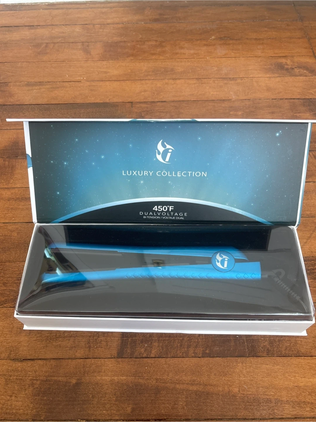 Professional salon model 1" ceramic straightening and curling flat iron. It's dual voltage and reaches up to 450°F. Features 100% solid ceramic plates with infrared technology for smoother hair. Perfect for creating various hairstyles quickly!