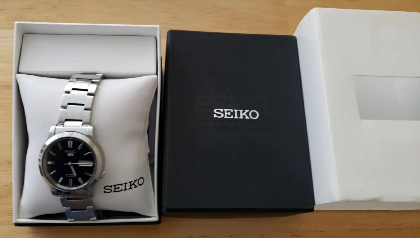 Buy & SellSeiko 5 Automatic Men's Watch - Stainless SteelSeiko 5 Automatic Men's Watch - Stainless Steel$225Seiko 5 automatic watch with a stainless steel band. It features a blue dial and a day-date complication. Includes the original box.ConditionLike newBrandSeikoWHERE TO MEETCIBC Branch with ATMView MapSELLERverifiedAveryFinch and weston600 reviews0 chats·1 favorites·36 viewsSEND CHAT TO SELLERHi Avery! I’m interested in your listing.Hi Avery! I’m interested in your listing.Get the Karrot app to chatSign In to chat