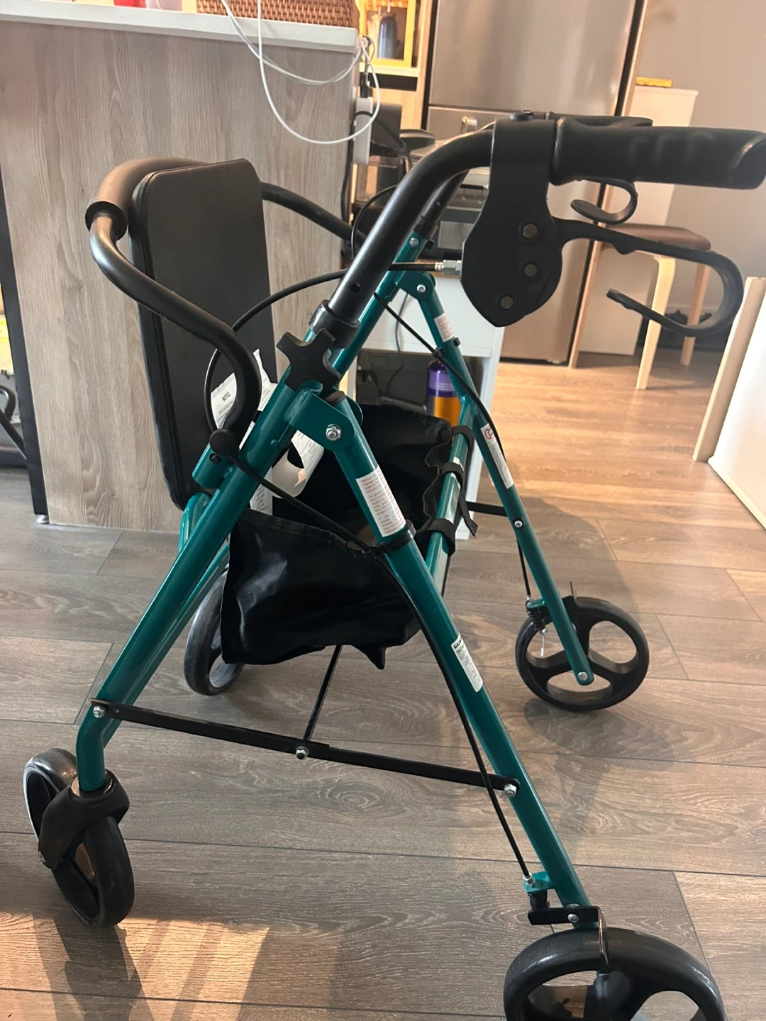 95% new Medline Teal Steel Rollator Walker with Seat and Bag