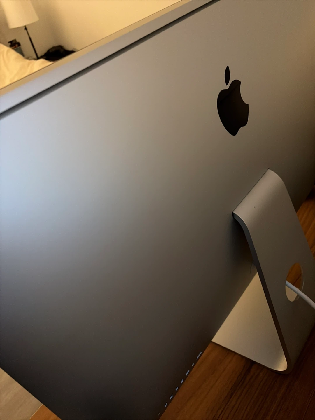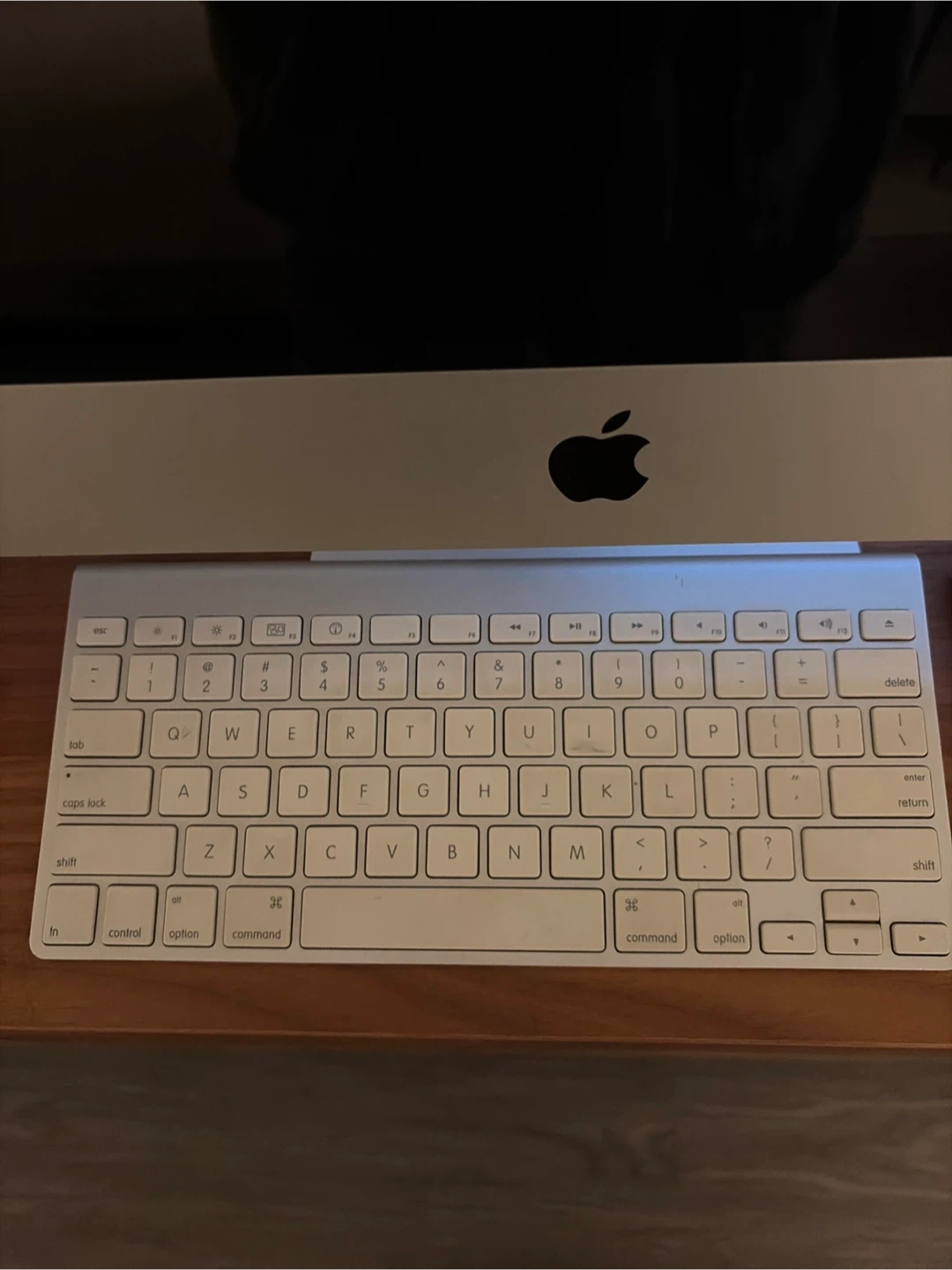 This is an Apple iMac 27” desktop computer from 2010 with a silver finish. It comes with an Apple keyboard and a Magic Trackpad. It's a great all-in-one machine for home or office use.