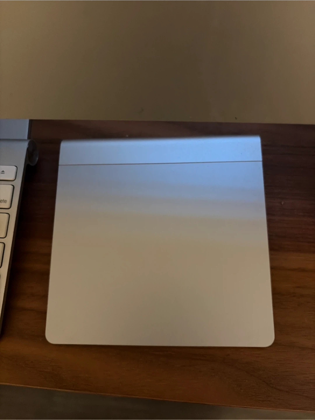 This is an Apple iMac 27” desktop computer from 2010 with a silver finish. It comes with an Apple keyboard and a Magic Trackpad. It's a great all-in-one machine for home or office use.