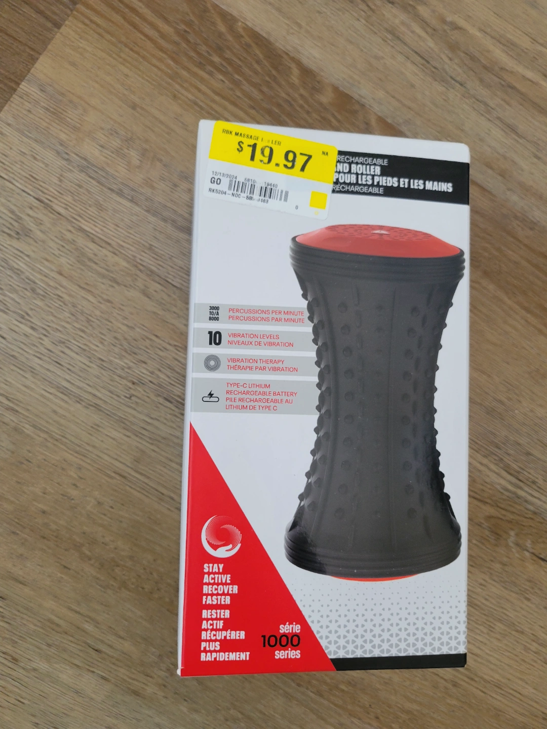 Rechargeable massage roller. Cordless and portable. Up to 60 minutes use on a full charge. 10 vibration levels. Relieves muscle soreness and tension. Great for feet and hands. New, unopened box.