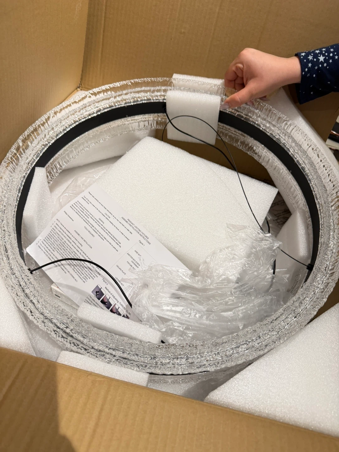 A stunning crystal ring chandelier designed to add a touch of elegance to any room. It features a sleek black finish and includes a remote control for easy adjustments. This fixture is app-controllable for added convenience. It's perfect for dining rooms or living areas.
