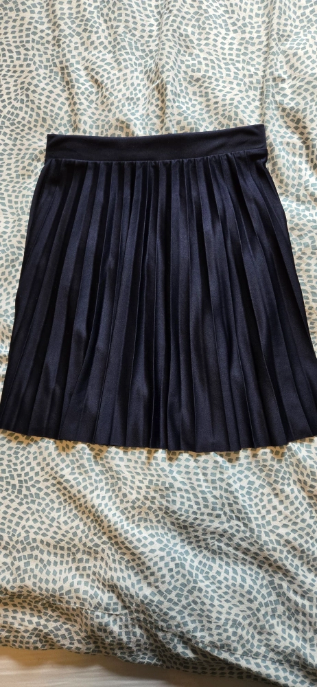 Women's navy blue pleated mini skirt. Elastic waistband. Size XS. 100% polyester.