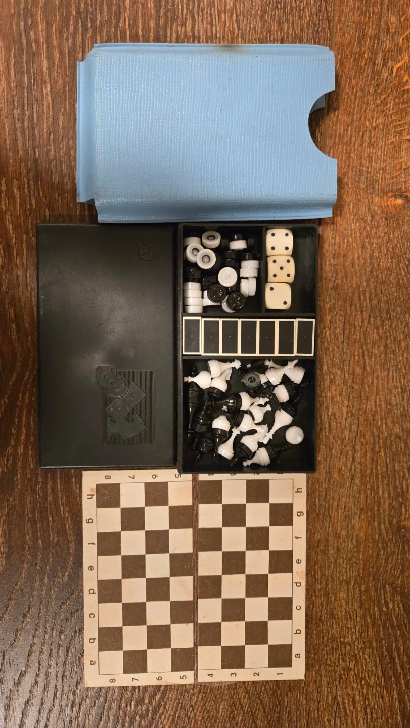 USSR Soviet vintage Travel Chess Set with Checkers and Dice