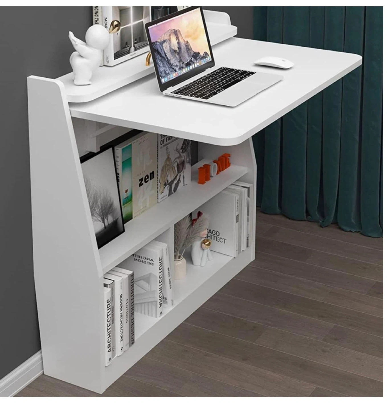2-in-1 White Folding Bookshelf and Laptop Desk