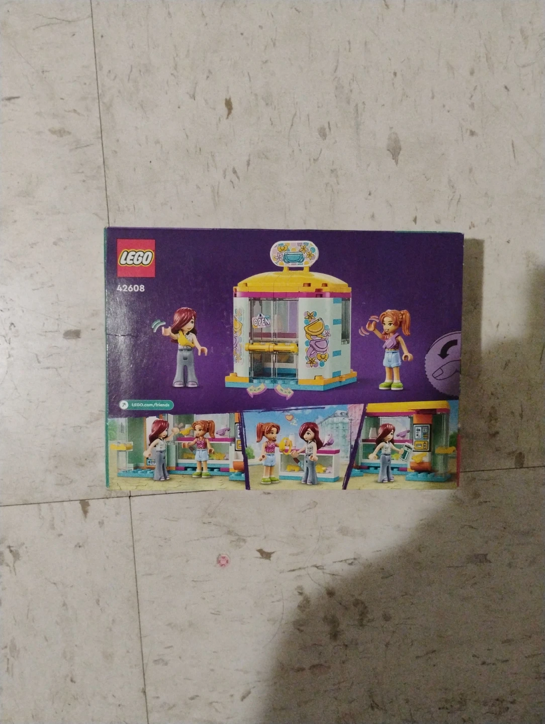 This is a LEGO Friends building set with 129 pieces. It's recommended for ages 6 and up. Includes two mini-doll figures, Paisley and Candi. A fun set for building a toy shop!