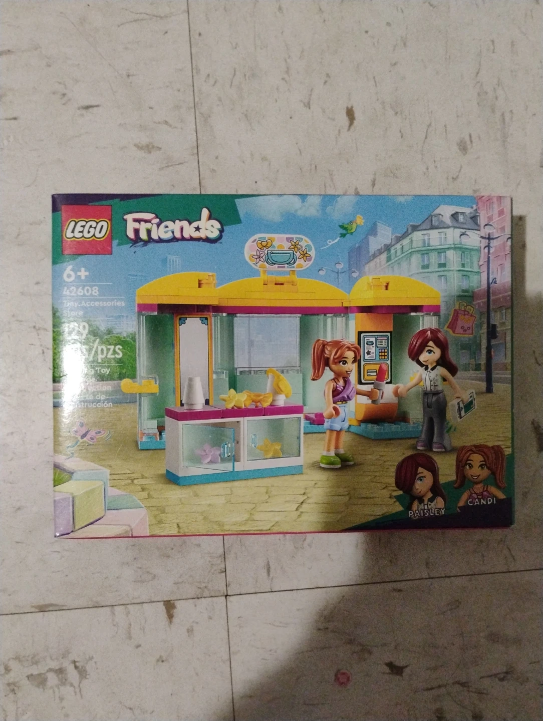 This is a LEGO Friends building set with 129 pieces. It's recommended for ages 6 and up. Includes two mini-doll figures, Paisley and Candi. A fun set for building a toy shop!