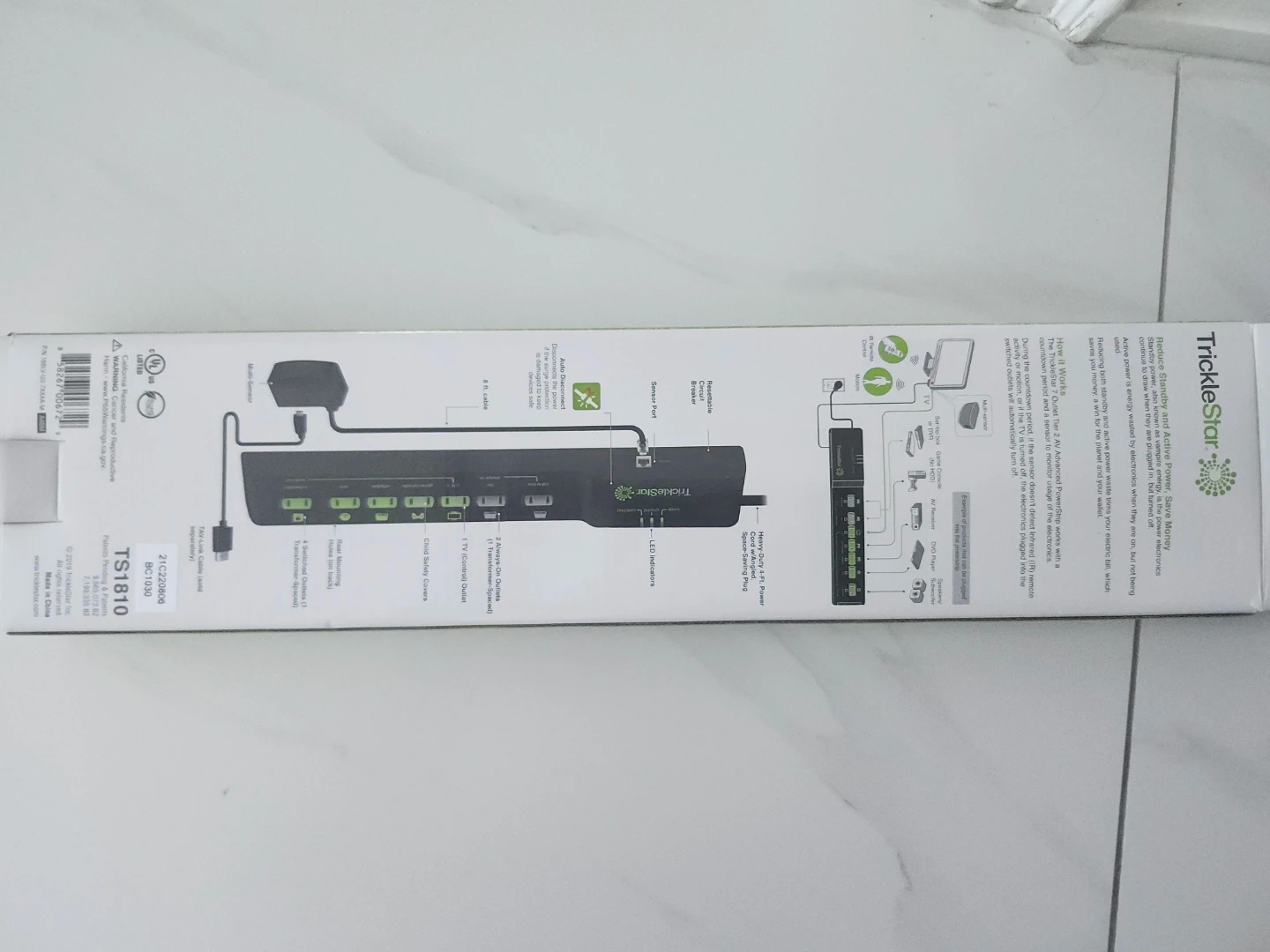 This TrickleStar TS1810 is an advanced power strip offering 1,080 Joules of surge protection. It's designed with a space-saving angled plug and includes a 4 ft. heavy-duty power cord. It also features 3 always-on outlets and 3 timed outlets.