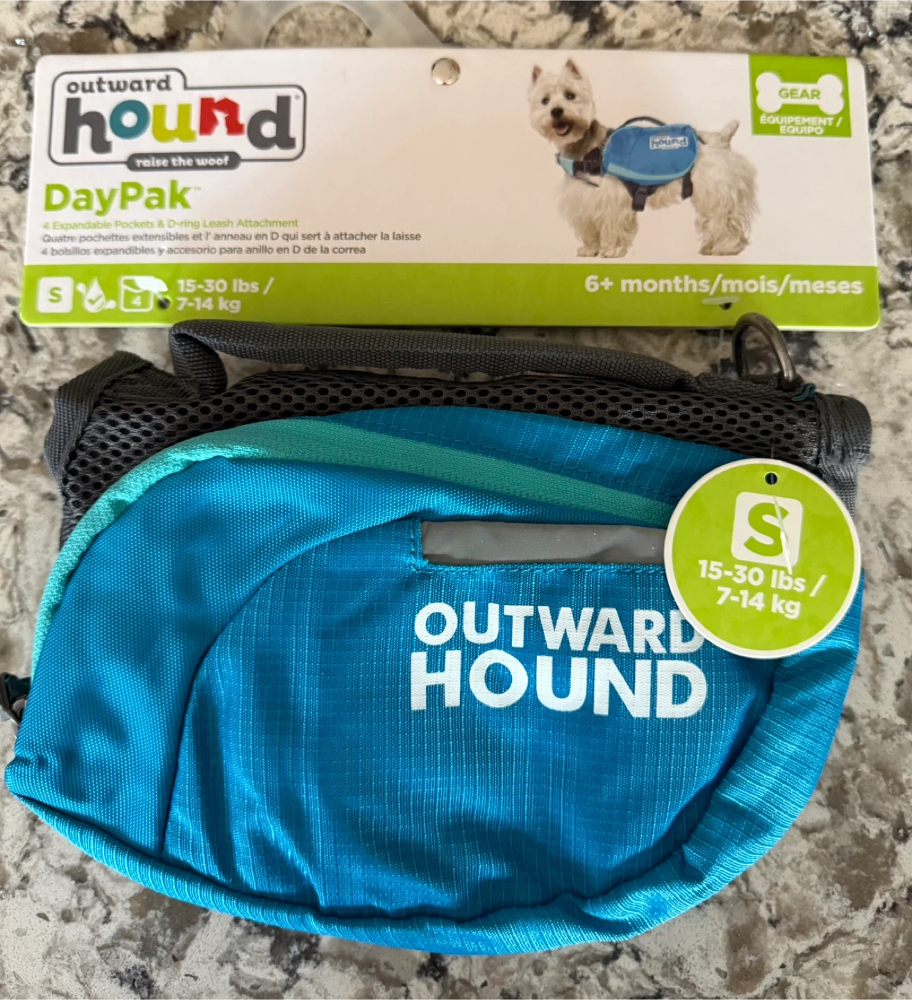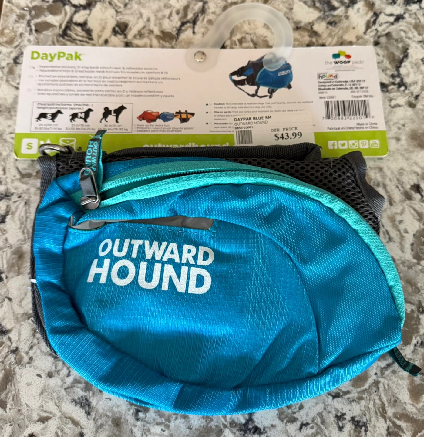 This Outward Hound DayPak is perfect for your furry friend! It's a size small and in a vibrant blue colour.