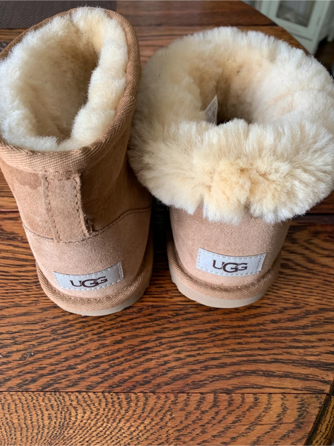 These UGG Australia mini boots are designed for comfort and warmth. They're made with suede and feature a cozy sheepskin lining. The classic stylish .Perfect for chilly days!