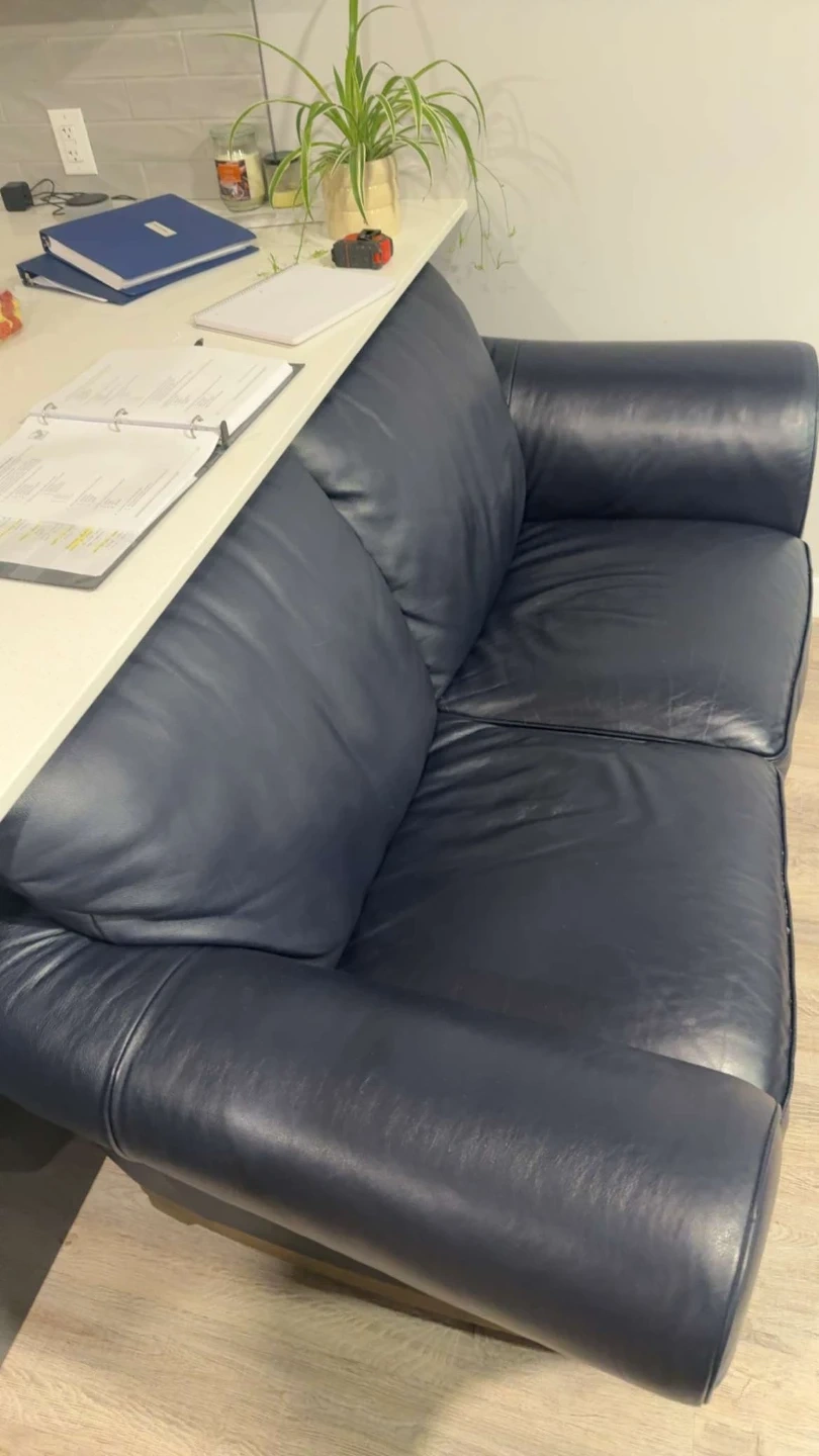 Blue Leather Loveseat Sofa