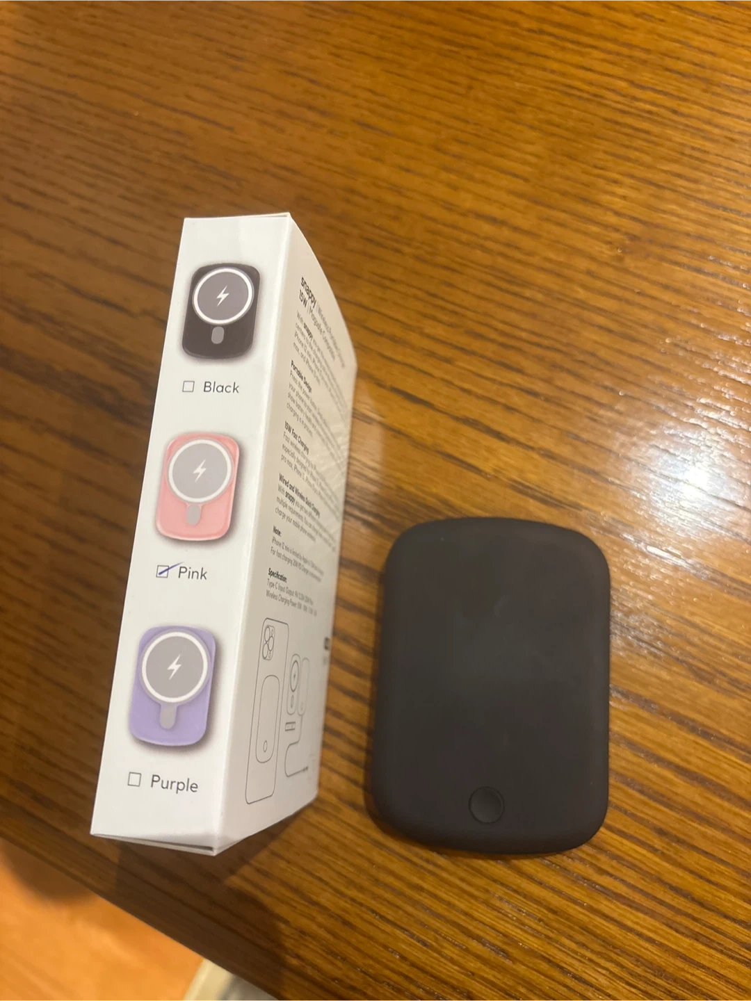 Snappy wireless charger designed for Magsafe series. Battery capacity is 5000mAh. It supports 5W/7.5W/10W/15W wireless charging output. USB-C input/output. Available in black.
