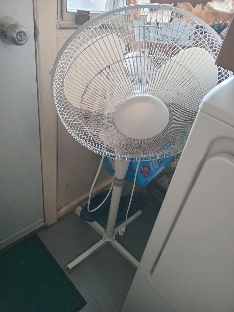 White stand fan. Good for cooling. Needs cleaning. Used condition. Everything works perfectly. Pick up only. Message if interested. Jane and Finch area for pick up.