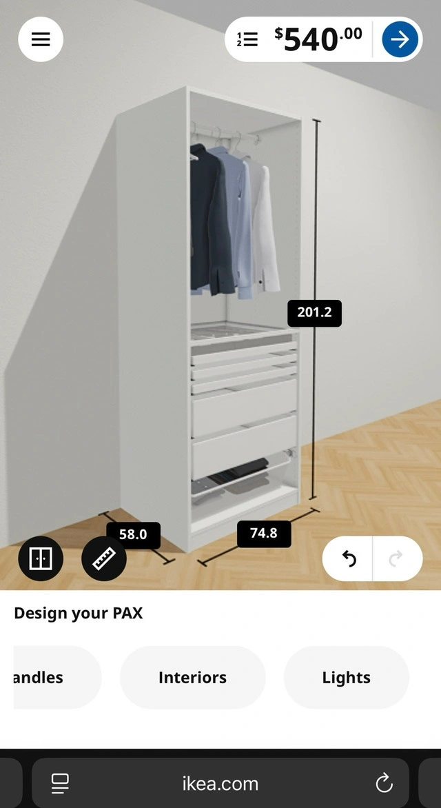 IKEA Pax Wardrobe - White, 75cm Wide