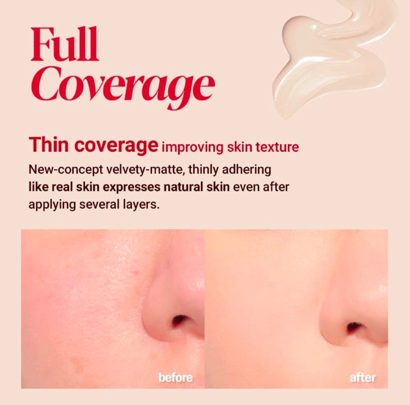 This is a Cushion Foundation in ivory colour by one of the top K-beauty brands, espoir. This cushion foundation is for people with sensitive skin and for those who want to have a thin but full coverage. It gives you a matte finish.