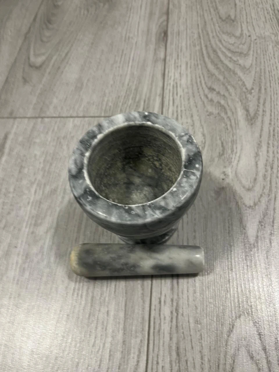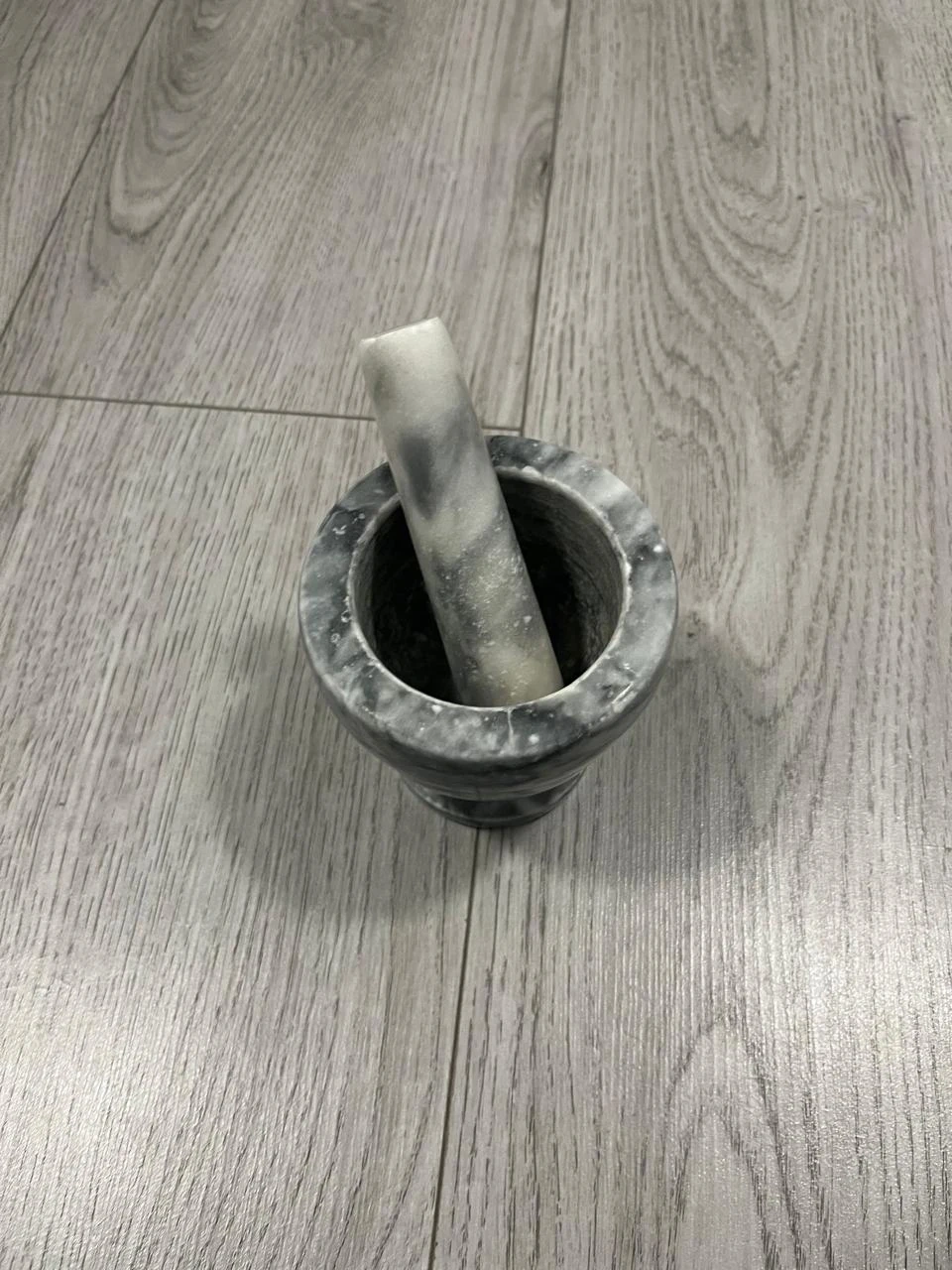 This mortar and pestle set is made from durable marble. The mortar has a wide opening for easy access, and the pestle is ergonomically shaped for a comfortable grip. It's perfect for grinding herbs and spices.