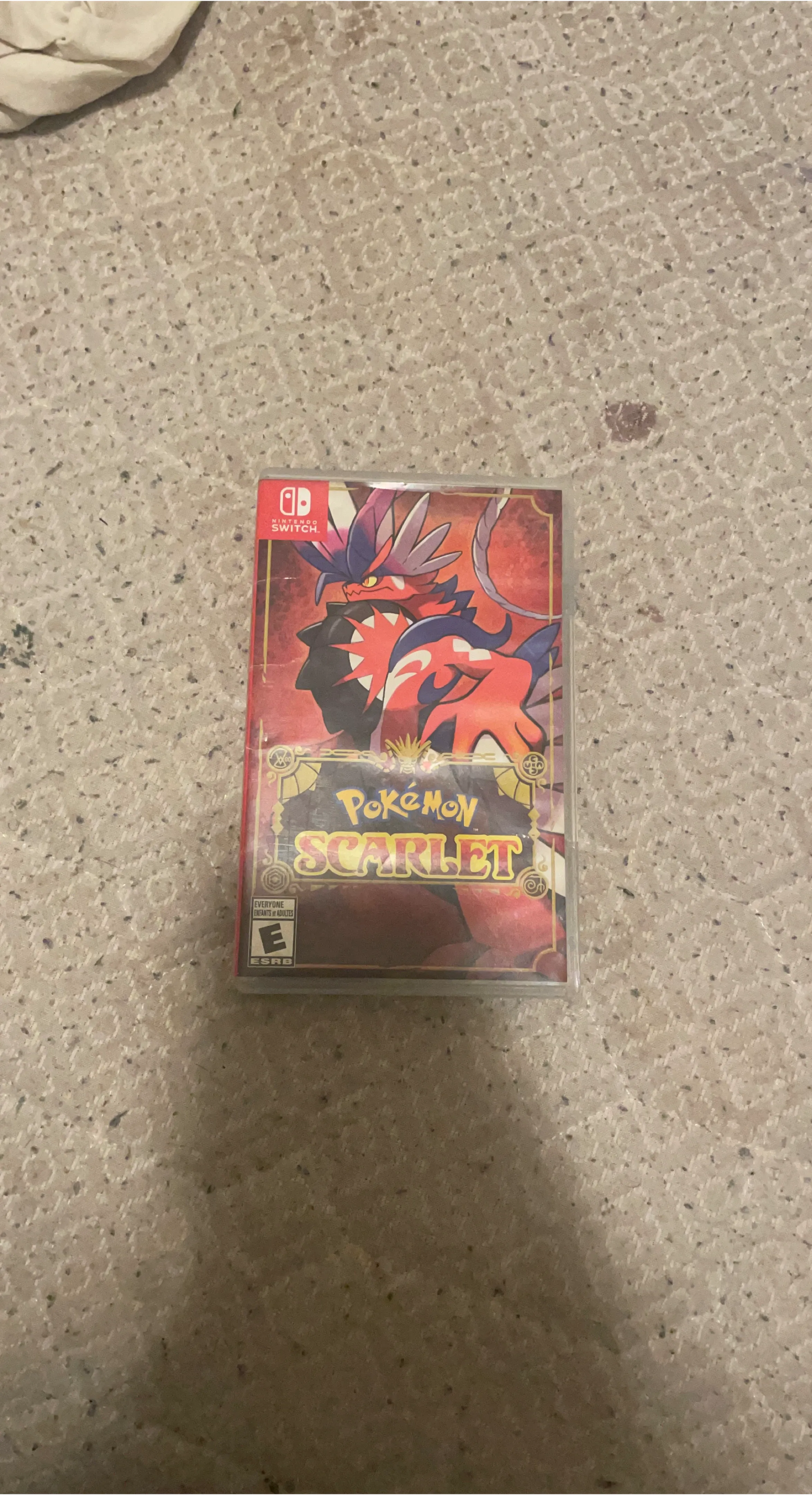 Pokémon Scarlet game for Nintendo Switch. ESRB rating E for Everyone. This adventure lets you explore the vibrant Paldea region.