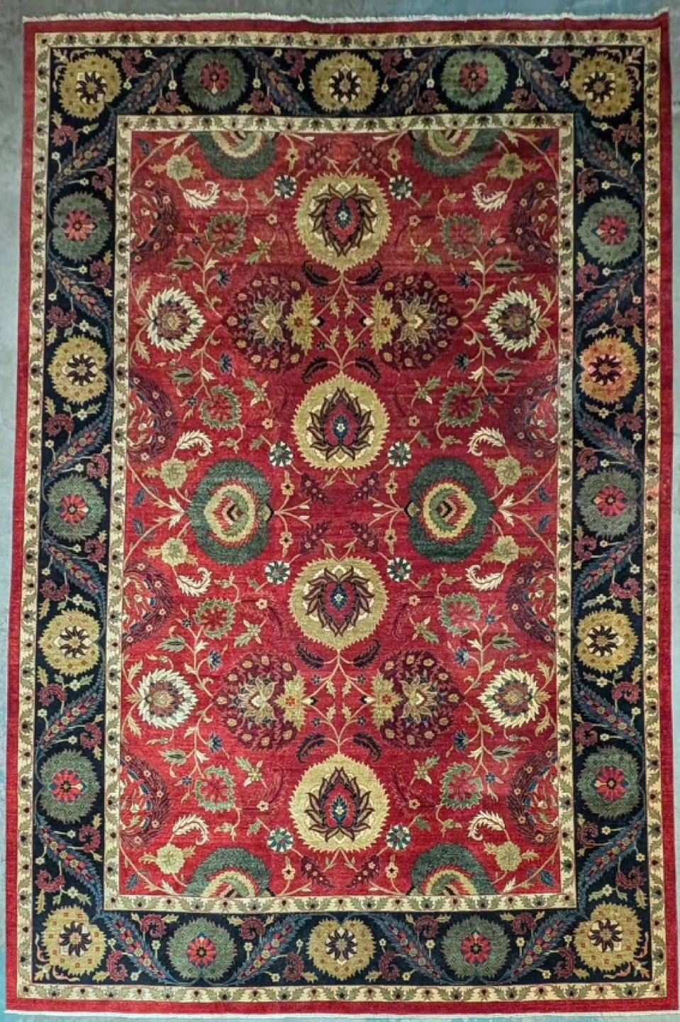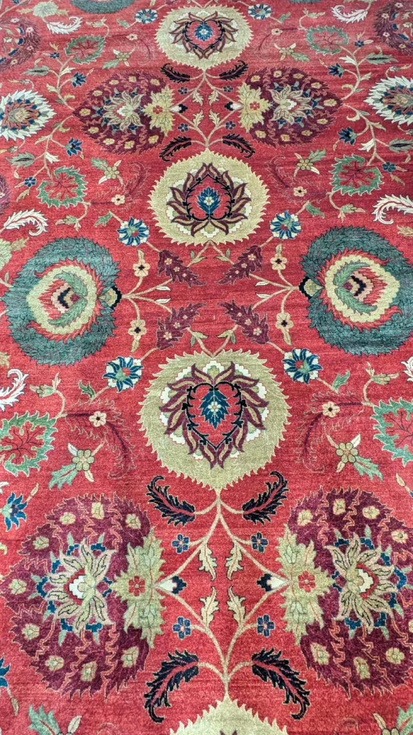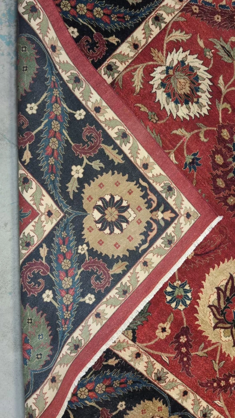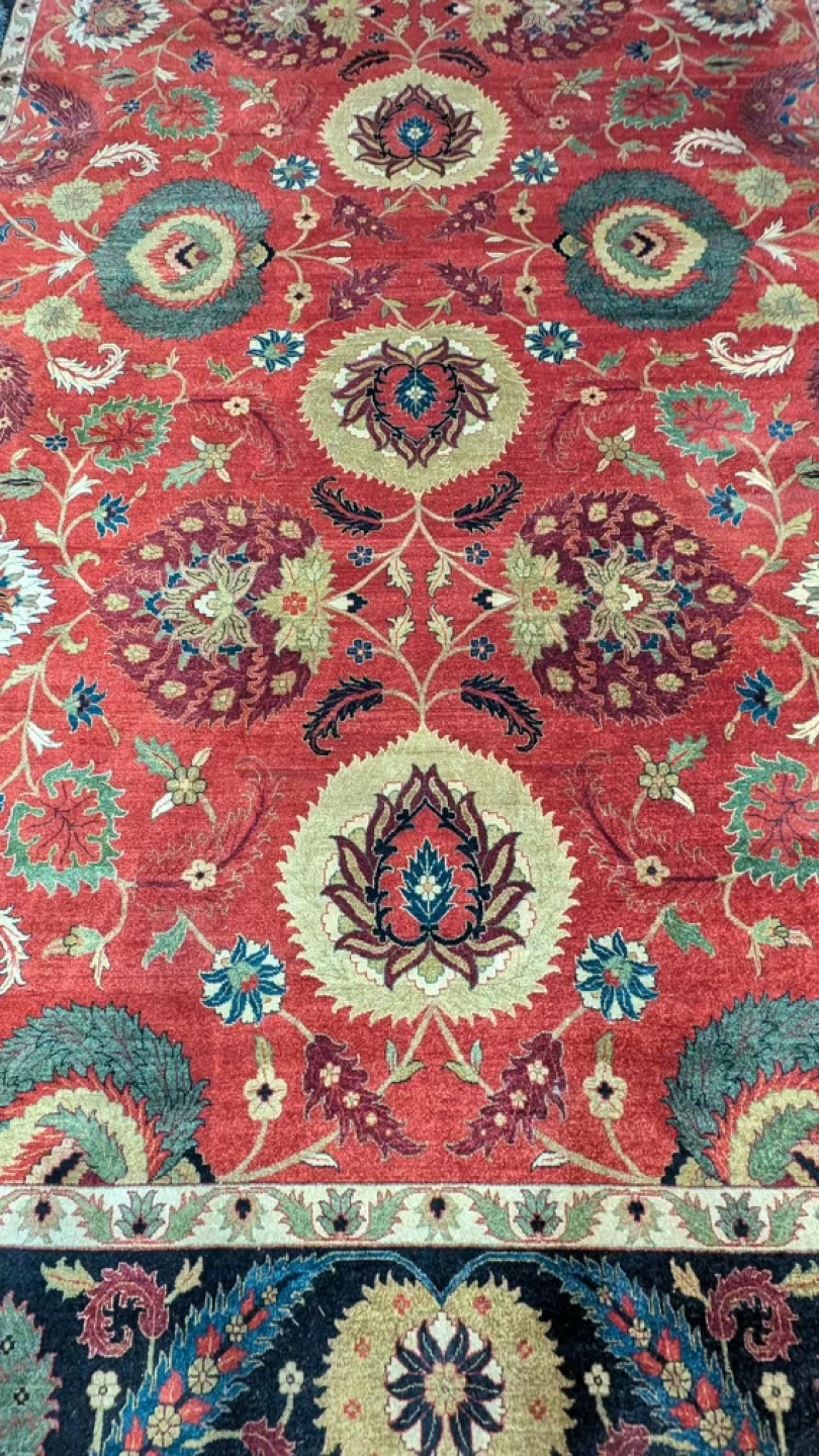 Gorgeous North American style double knot chobi , vegetable dyes, oversized flowers and design perfect for dining room / living room/ bedroom.