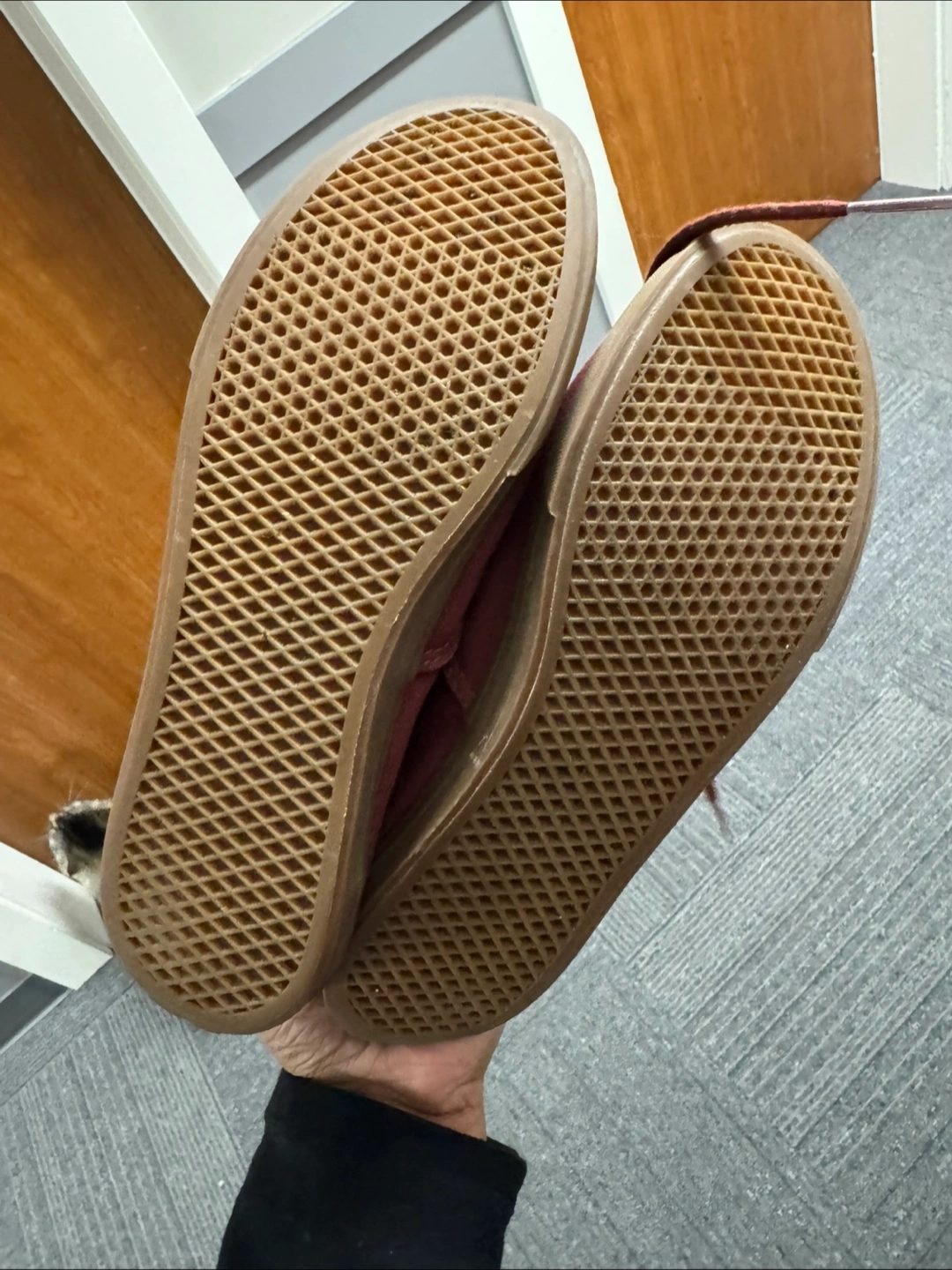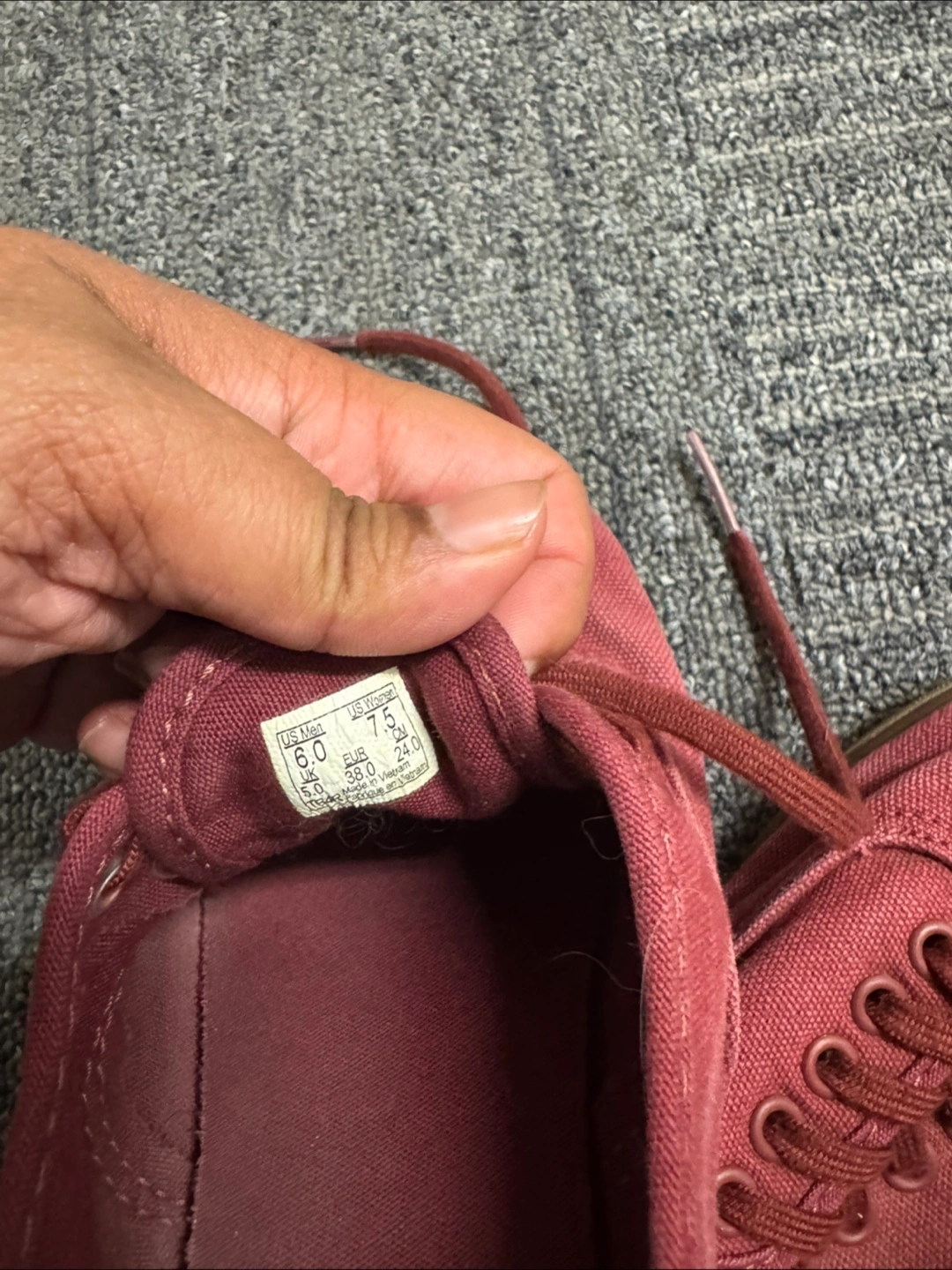 Pre-owned women's Vans Authentic sneakers. Burgundy colour. Size 7.5. Canvas material. Slightly worn but still wearable. Fits more like a 7