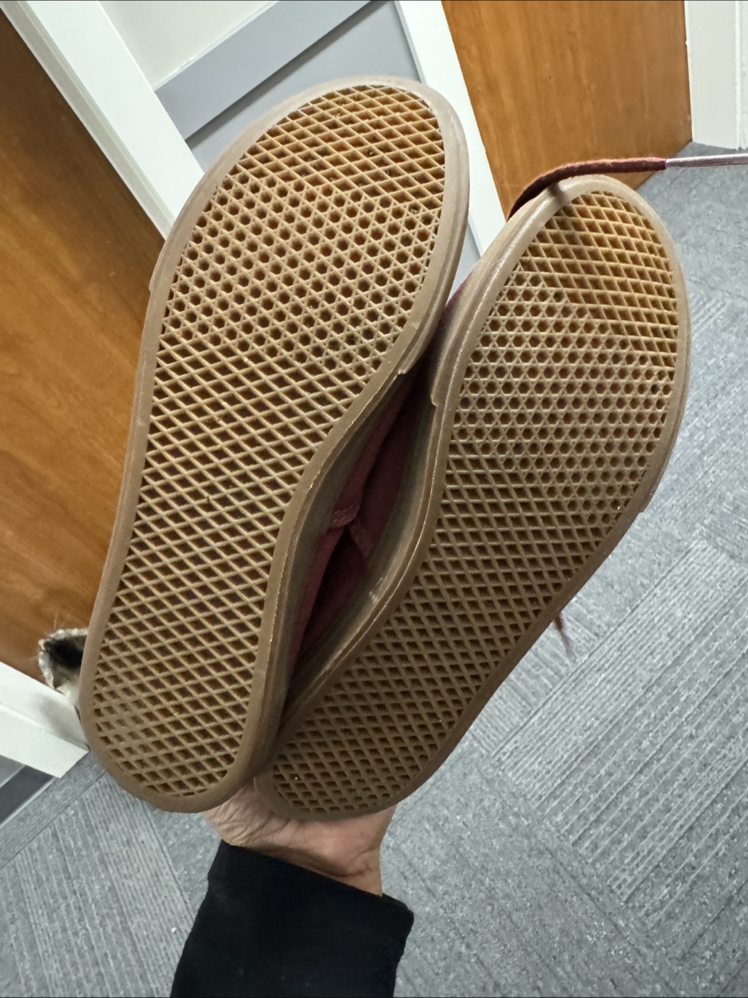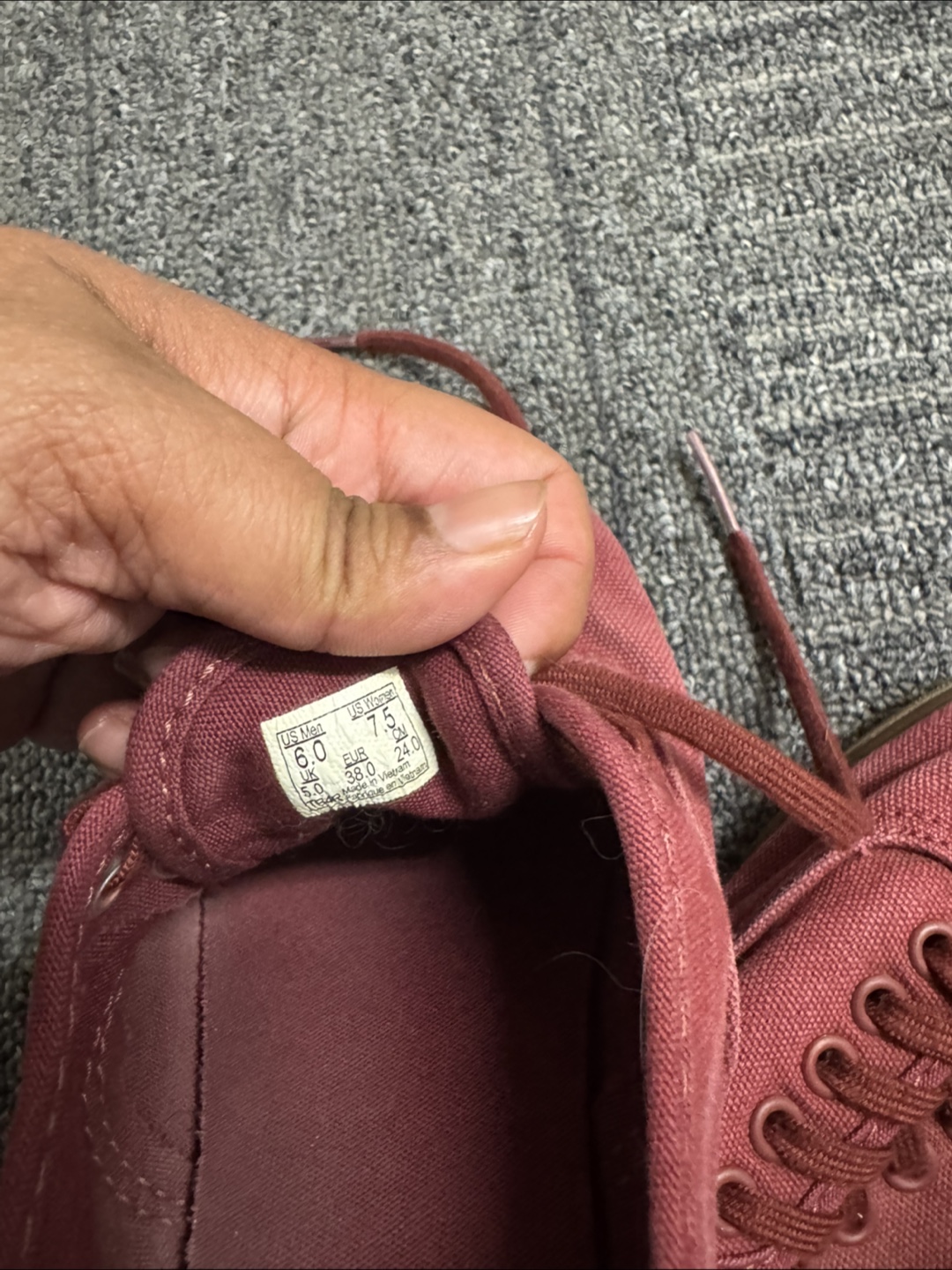Pre-owned women's Vans Authentic sneakers. Burgundy colour. Size 7.5. Canvas material. Slightly worn but still wearable. Fits more like a 7