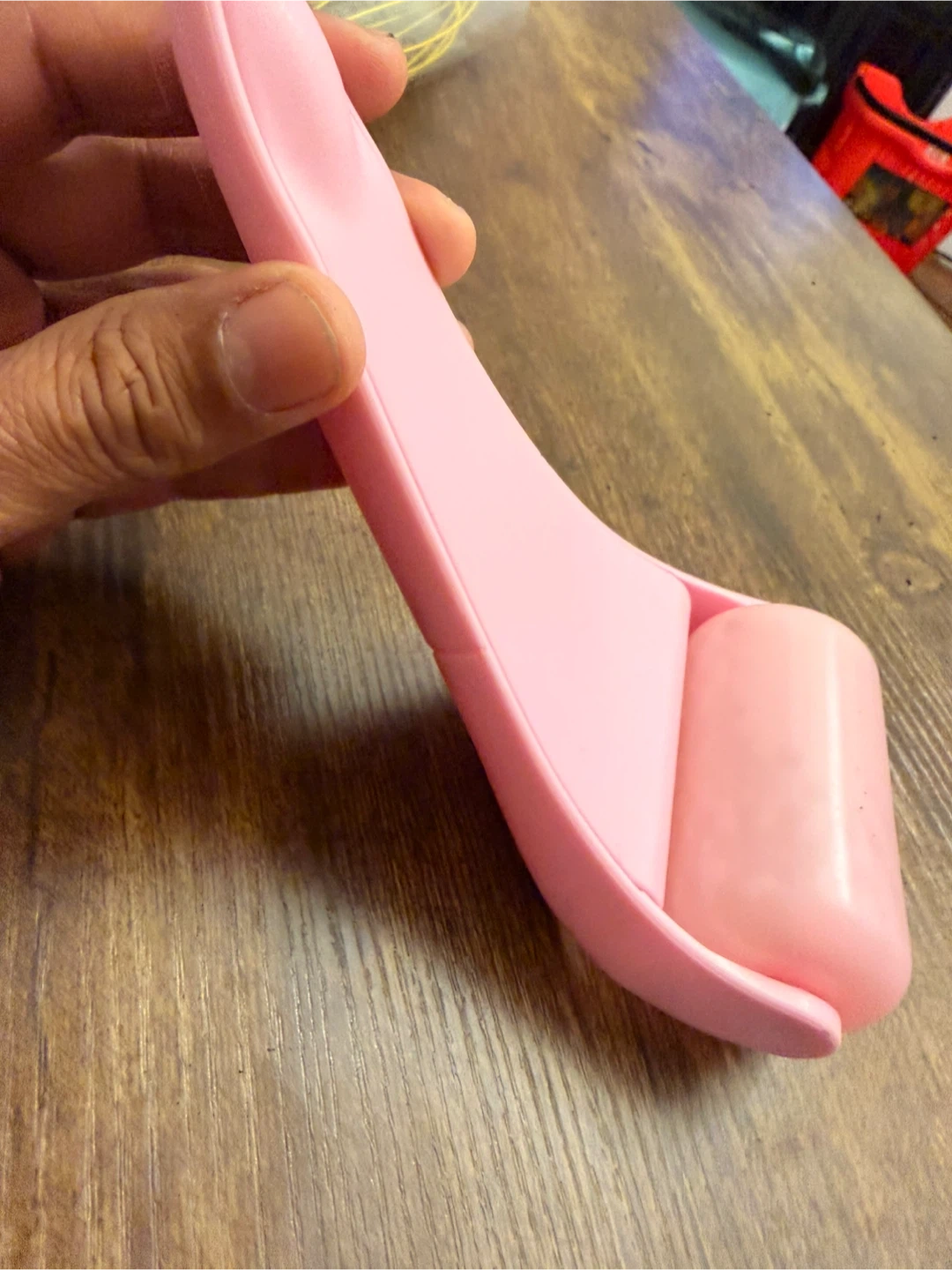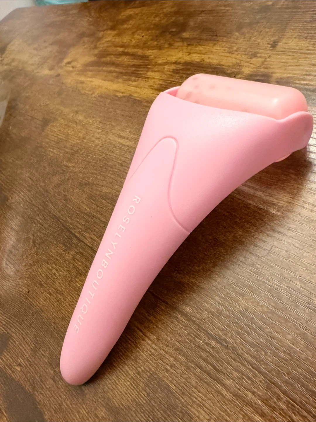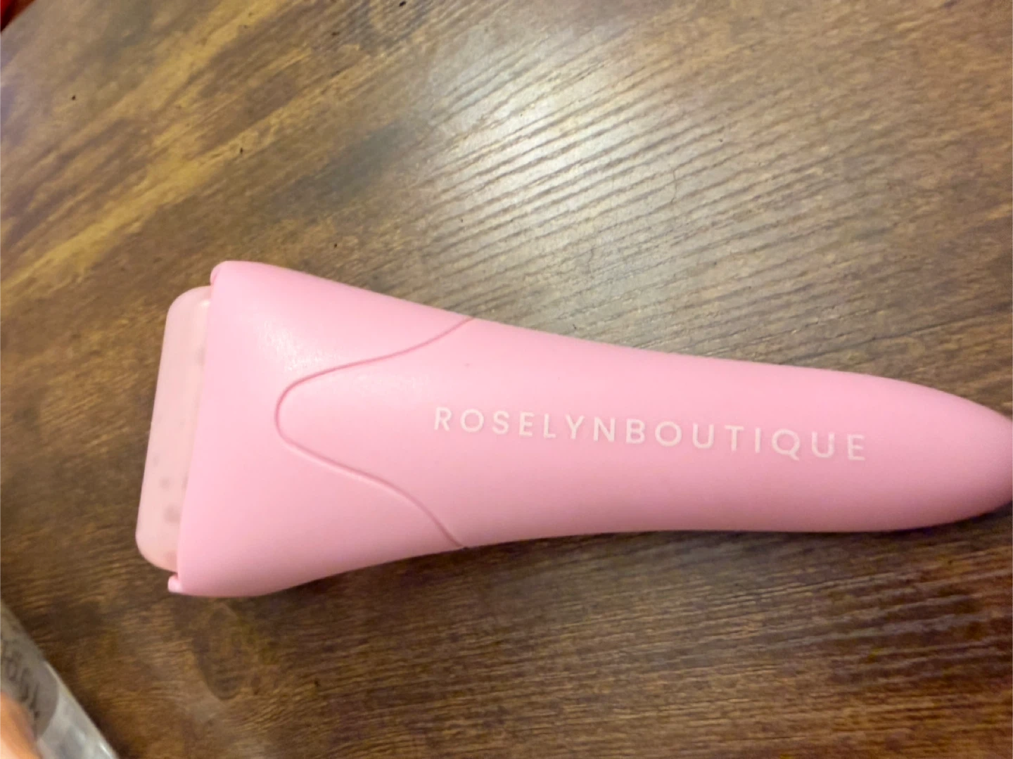 This pink ice roller is from Roselyn Boutique. It's designed to help cool and de-puff the skin. It's made of durable plastic and features a detachable roller head for easy cleaning.