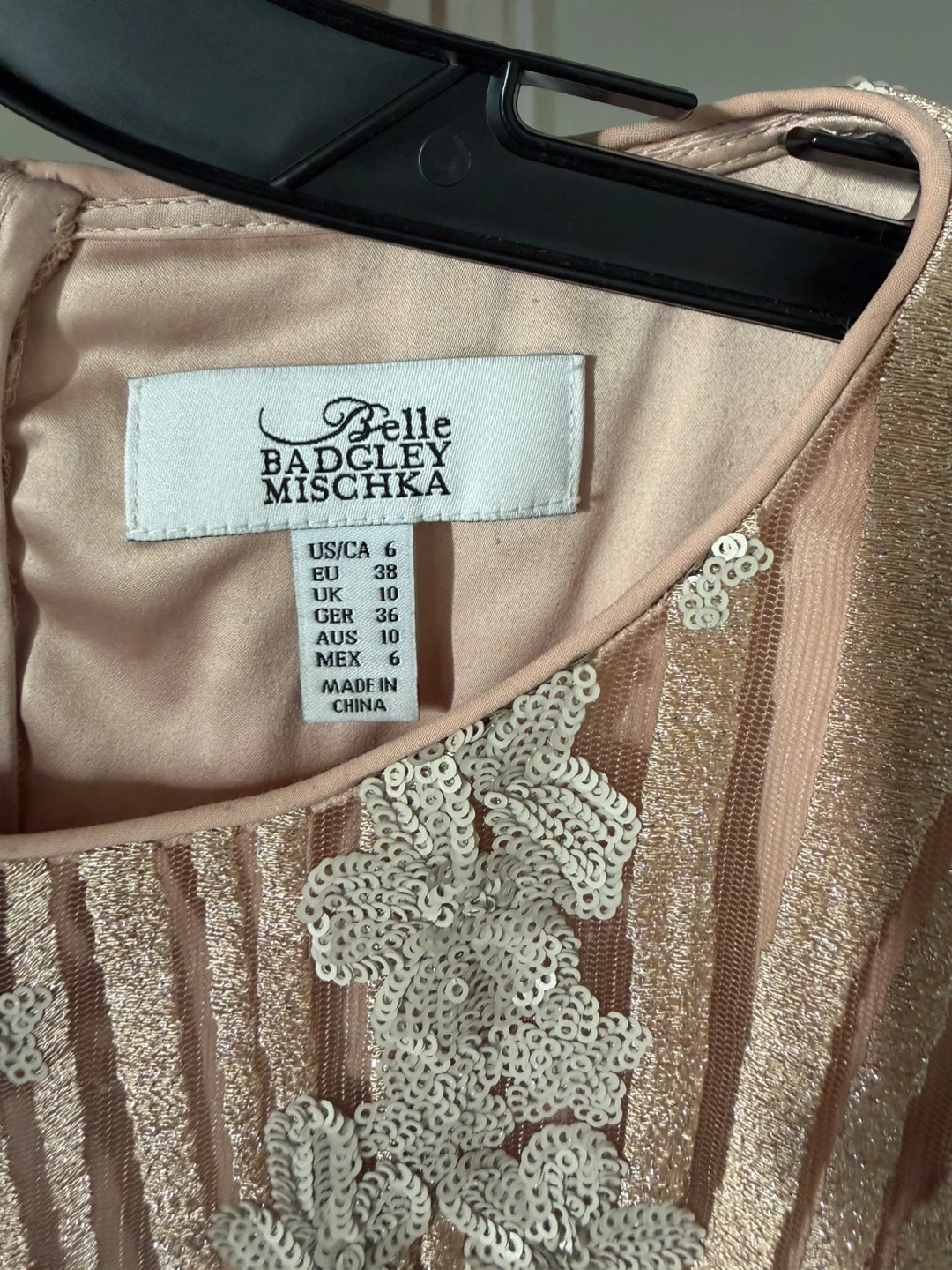 Belle Badgley Mischka Champaign color knee length dress size 6