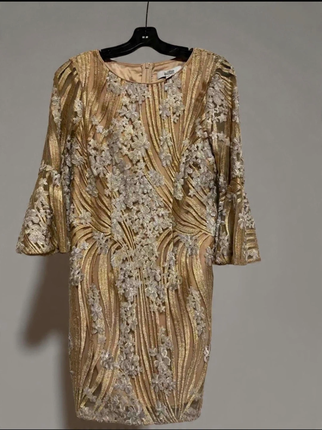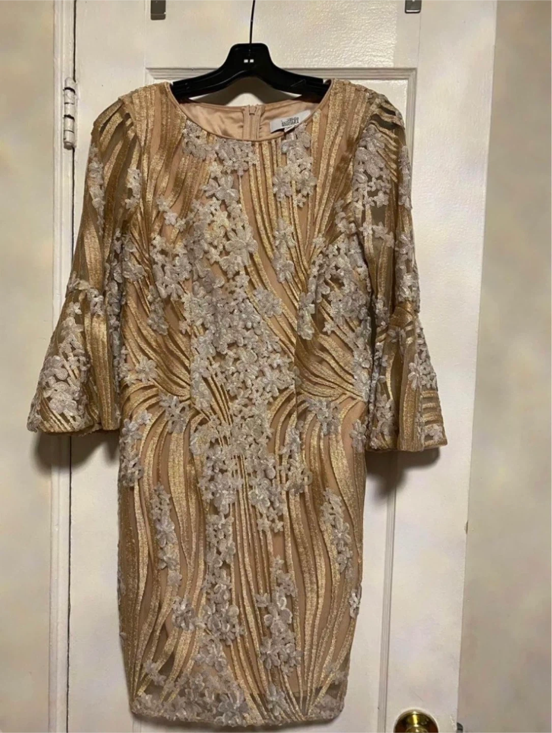 Belle Badgley Mischka Champaign color knee length dress size 6