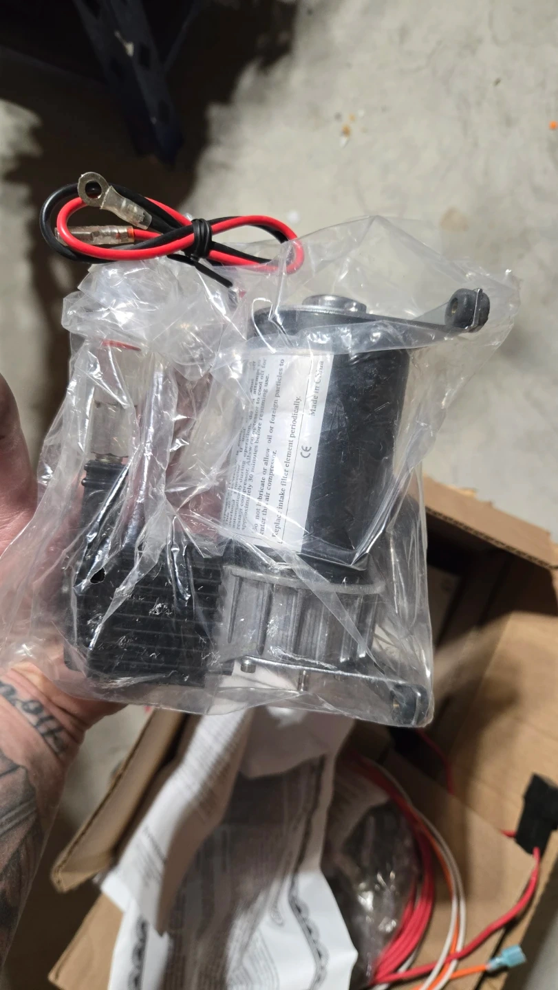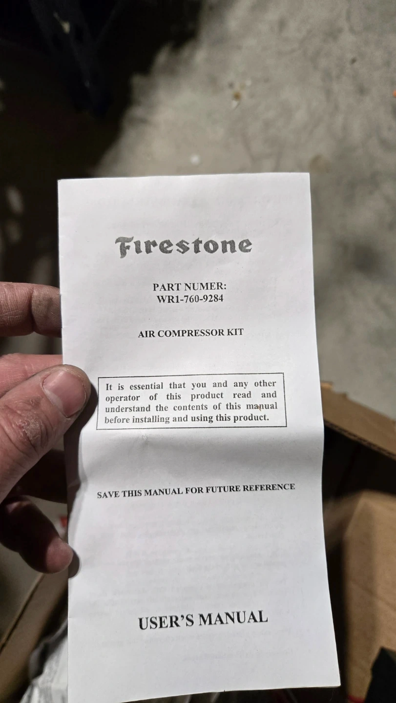 This is a Firestone Ride-Rite Air Helper Spring Kit, model W21-760 2430. It's designed to improve suspension performance on pickups, SUVs, vans, and motorhomes. The kit includes air springs and related hardware. It was manufactured on 07-11. As well as a universal on board air compressor