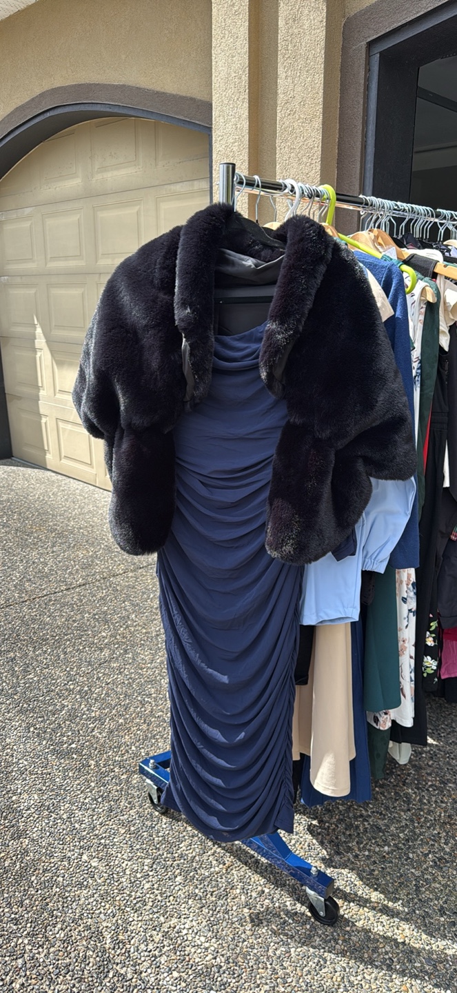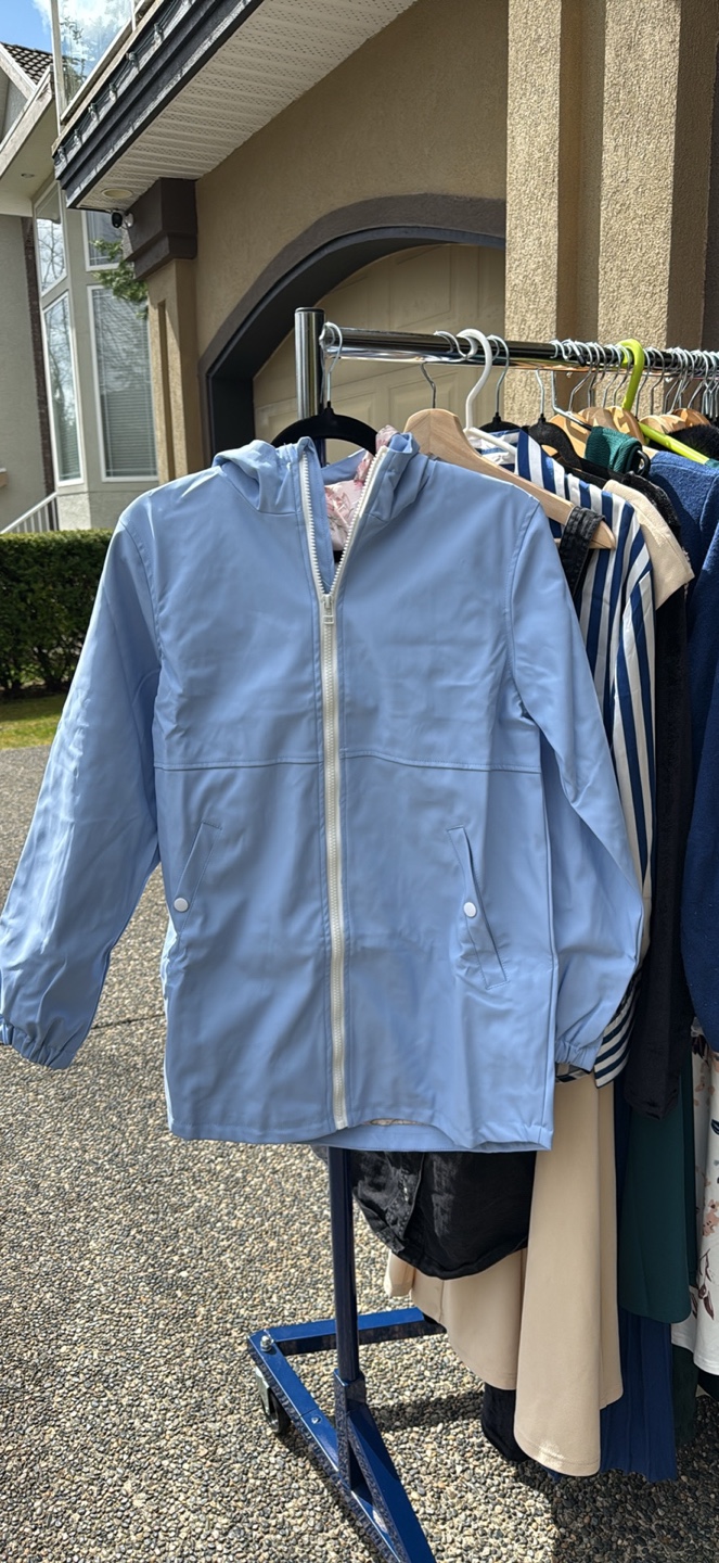 Brand new men's black puffer vest. Features a zipper closure and multiple pockets. Also included is a light blue rain jacket, great for spring showers.