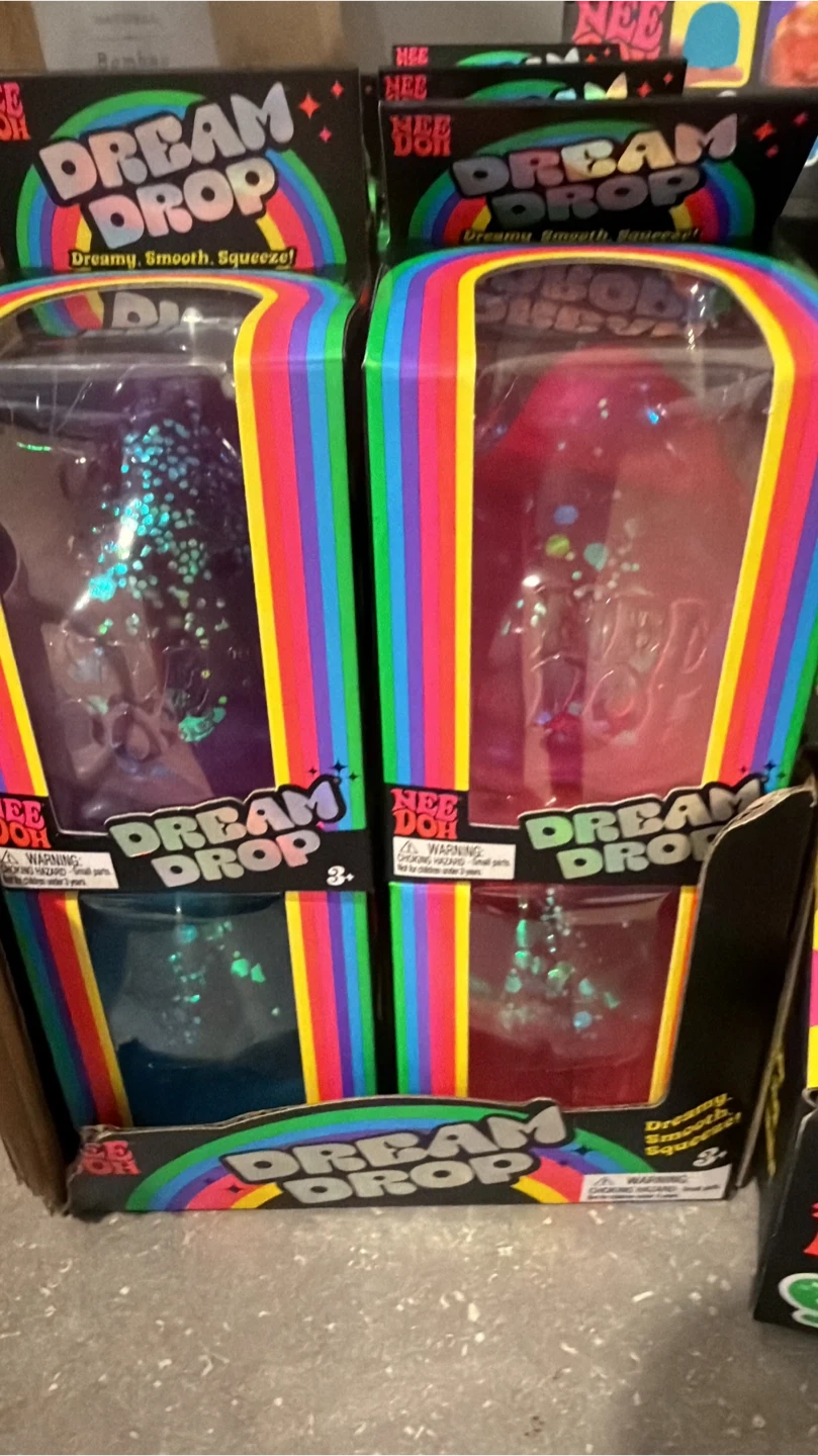 This Nee Doh Dream Drop toy is filled with glitter and has a dreamy, smooth texture. It's fun to squish and play with. Recommended for ages 3 and up.