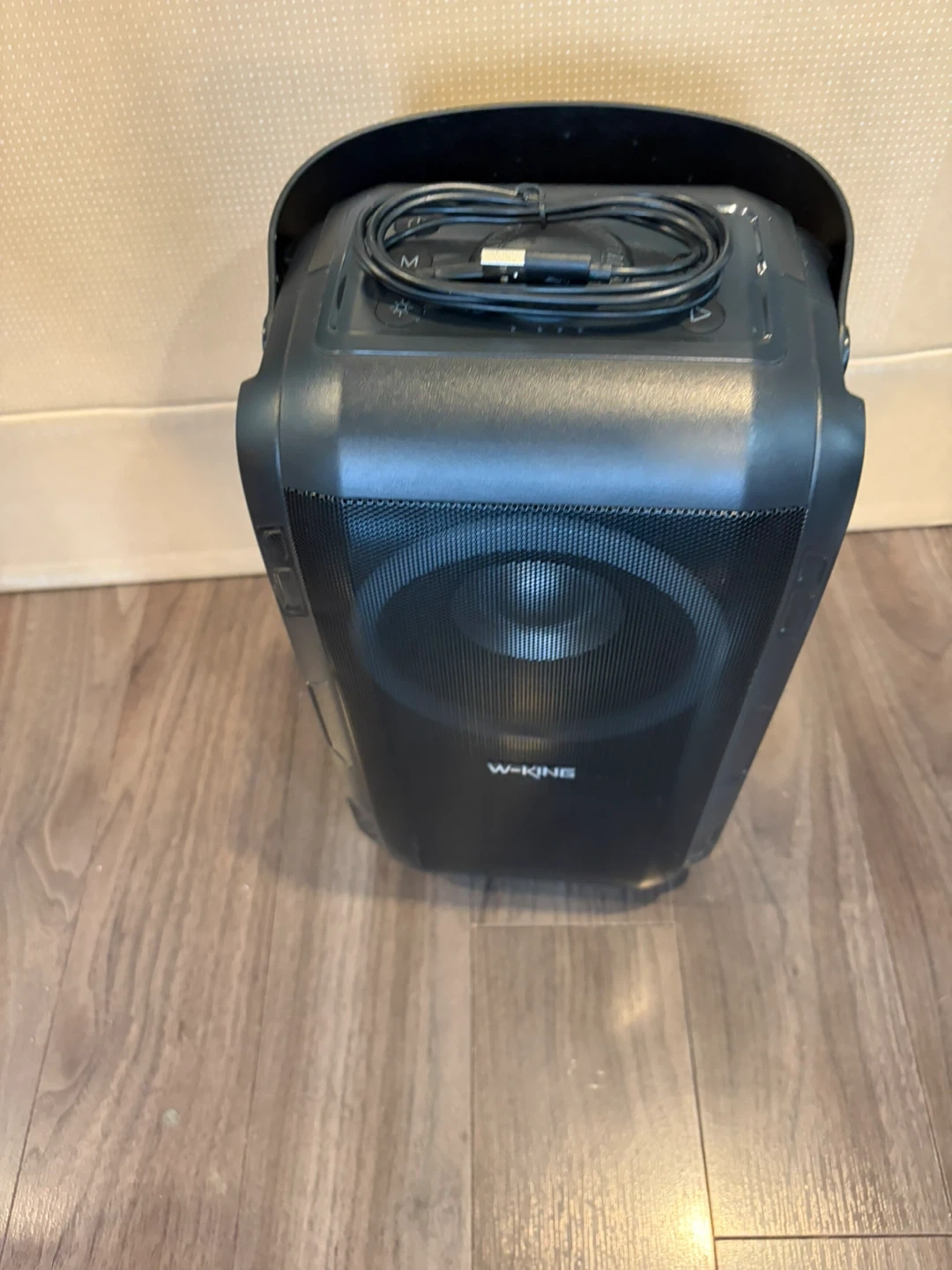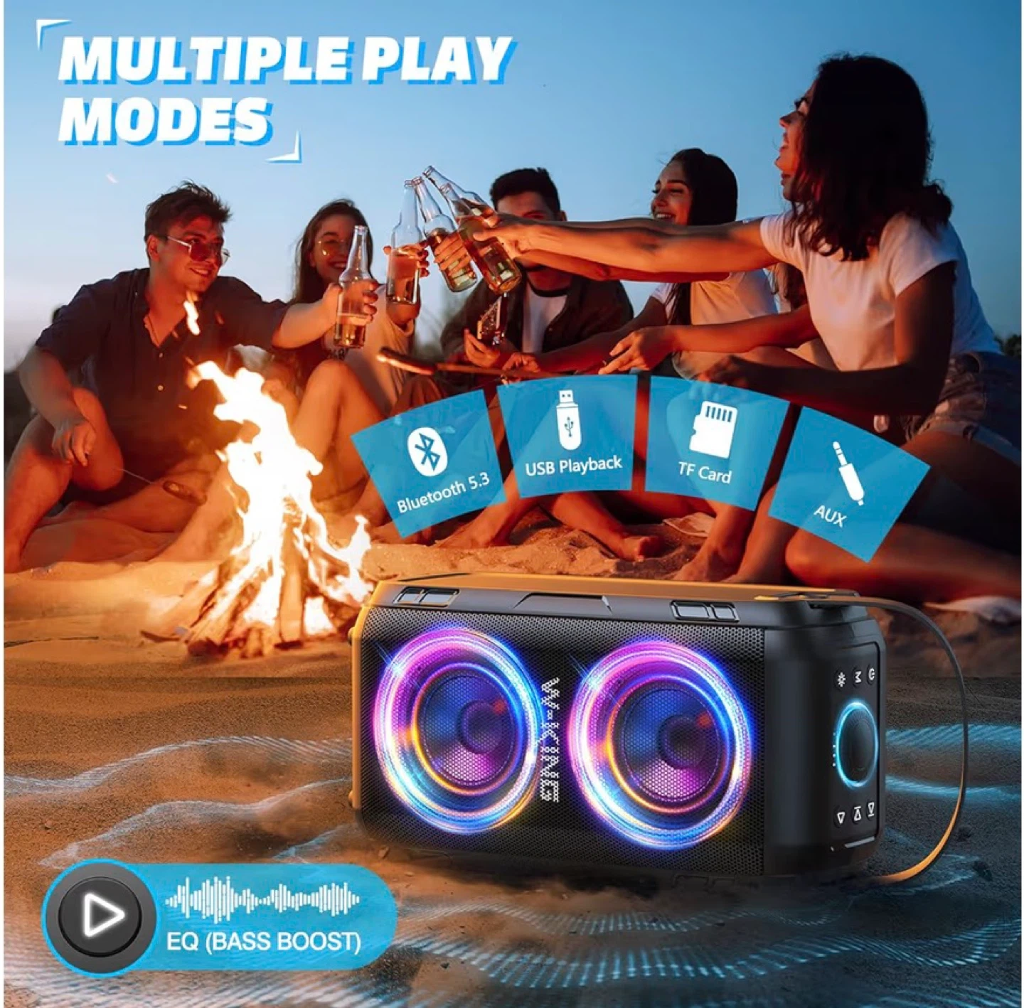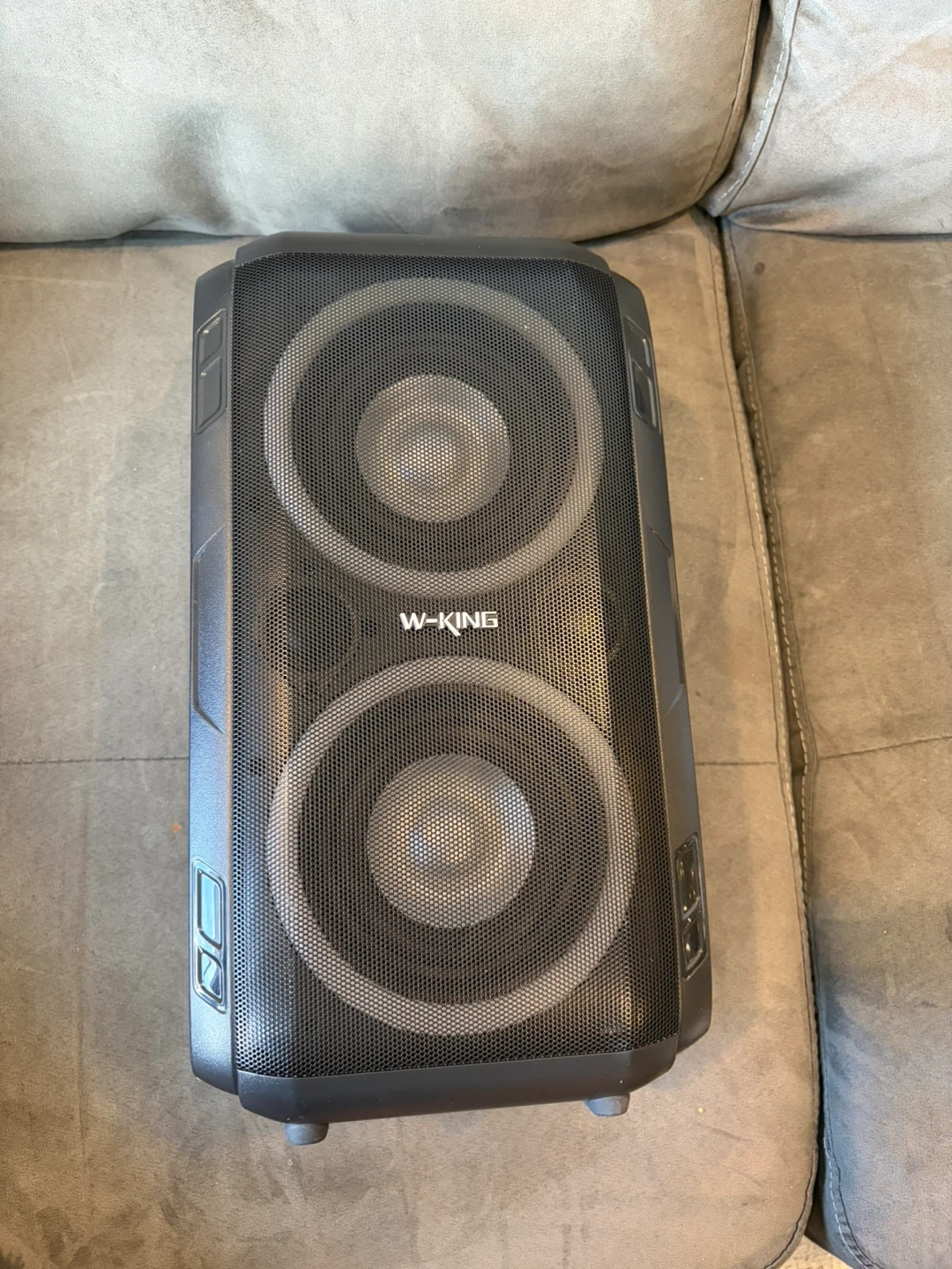 Selling a W-KING portable party speaker! It has multiple play modes including Bluetooth 5.3, USB Playback, TF Card, and AUX. It also has an EQ bass boost feature. Great for parties and outdoor gatherings!