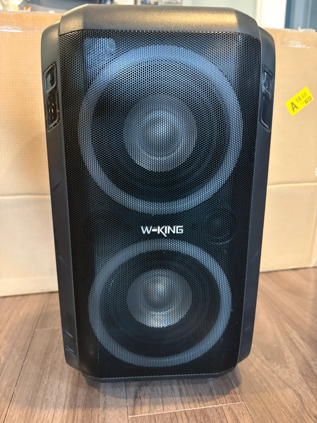 Selling a W-KING portable party speaker! It has multiple play modes including Bluetooth 5.3, USB Playback, TF Card, and AUX. It also has an EQ bass boost feature. Great for parties and outdoor gatherings!