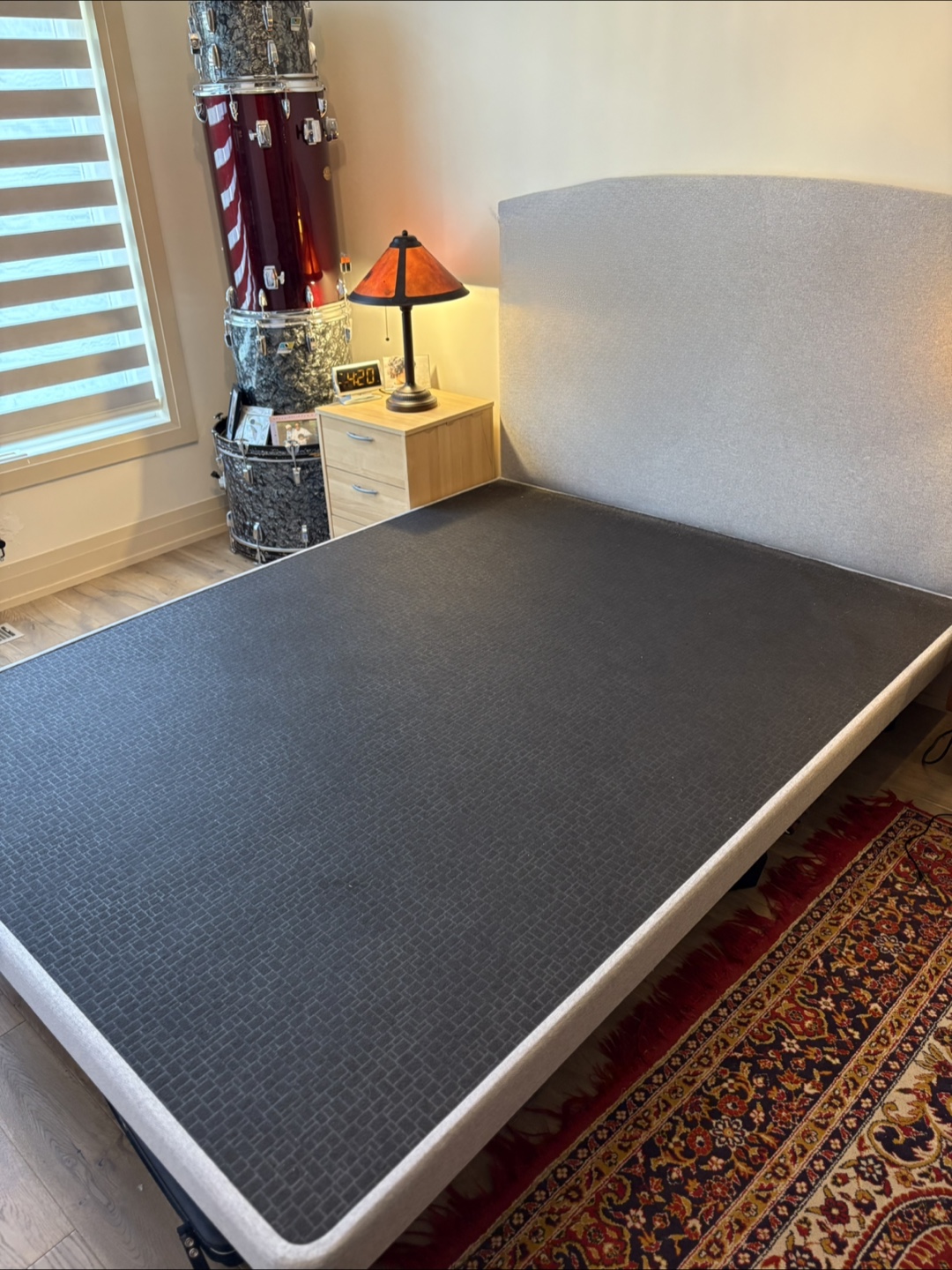 We are selling our queen-size upholstered bed frame to make room for a vintage model.