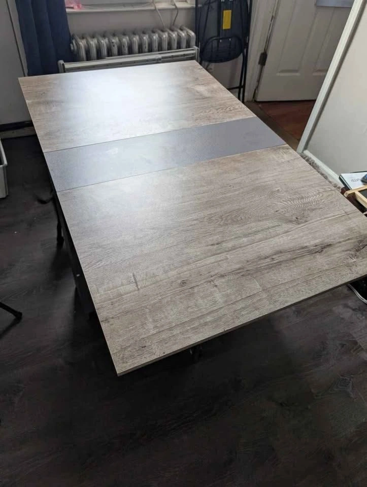 Selling a 4 seat dining table perfect for an apartment, house, or basement. It's still in like new condition and has cabinet space built in. This is a handy table that can conveniently be put away. Height is 2ft 8 inches, 49 inches wide and 31.5 inches across.