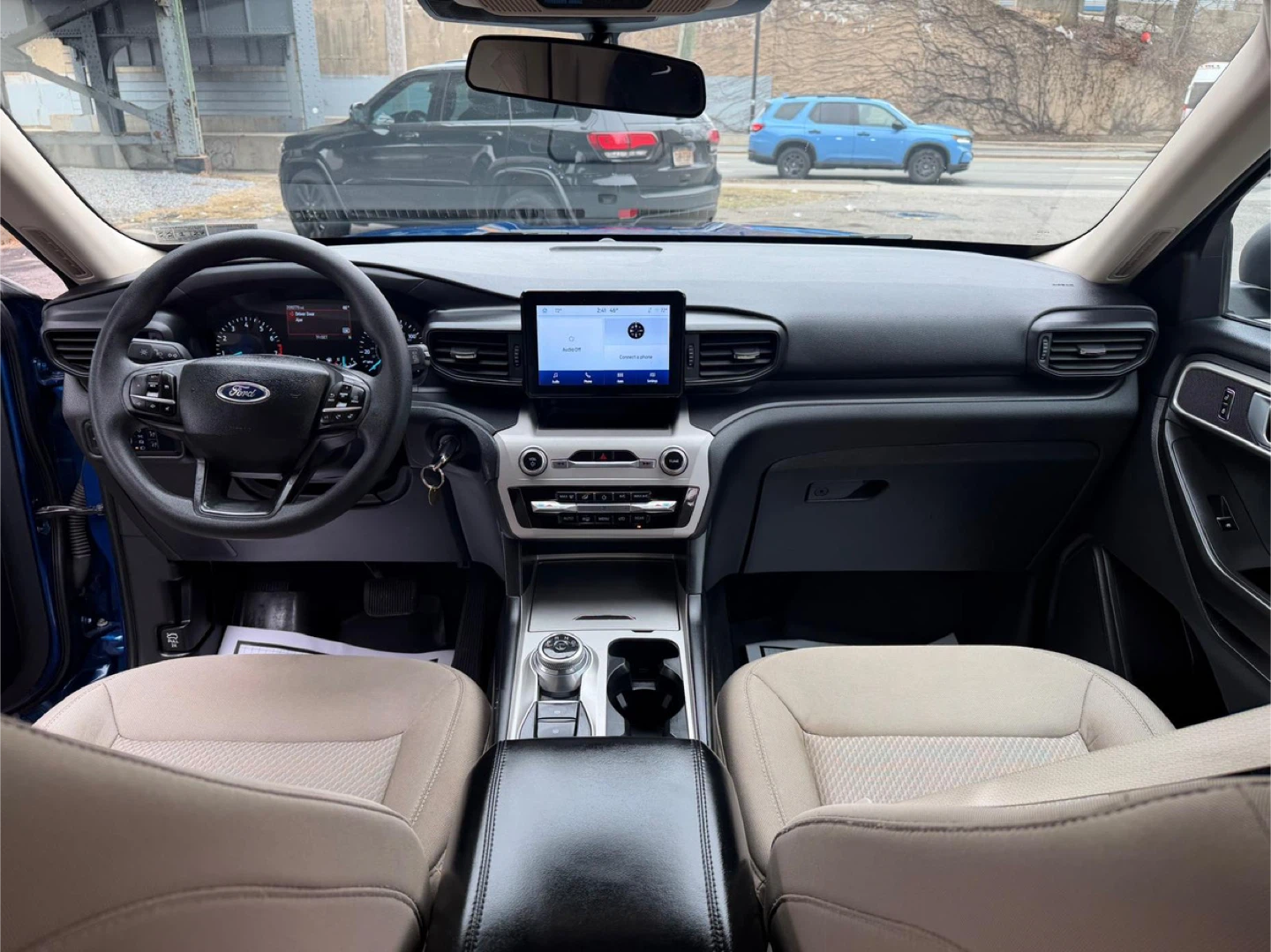 This is a blue Ford Explorer SUV. It has a spacious interior with cloth seats. It's a four-wheel drive vehicle.Ford nine and clean and good condition not issues problem $14500