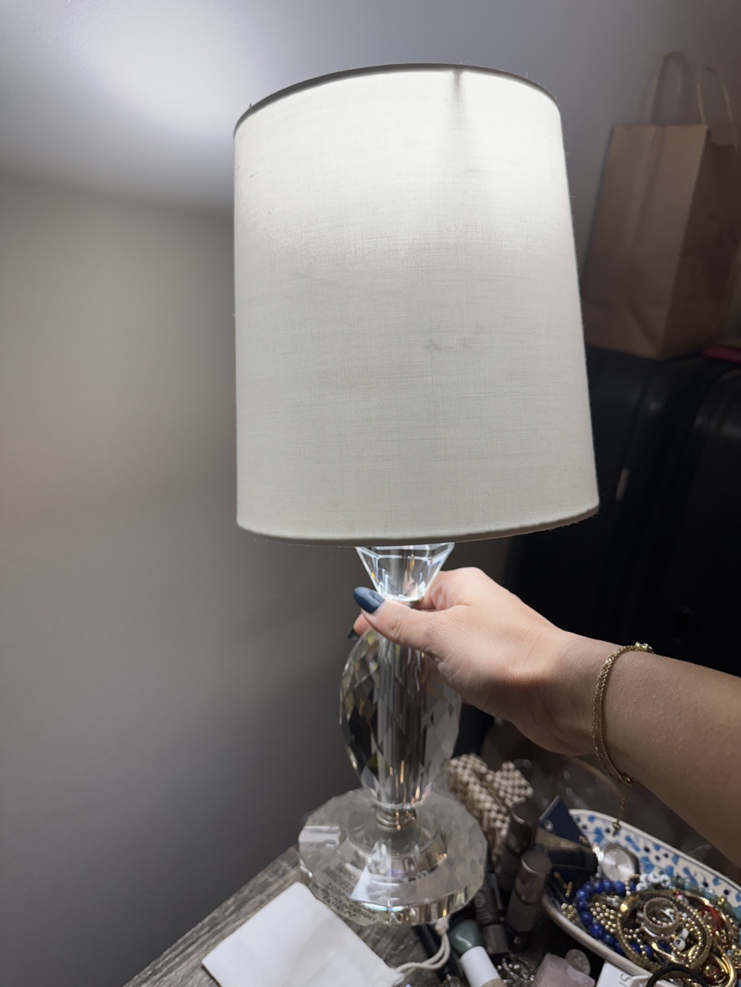 Buy & SellCrystal Table LampCrystal Table Lamp$20Crystal table lamp with a white fabric lampshade. The lampshade is a little dirty.ConditionLike newWHERE TO MEETYonge & bloorView MapSELLERAlinaYorkville513 reviews1 chats·1 favorites·39 viewsSEND CHAT TO SELLERHi Alina! I’m interested in your listing.Hi Alina! I’m interested in your listing.Get the Karrot app to chatSign In to chat