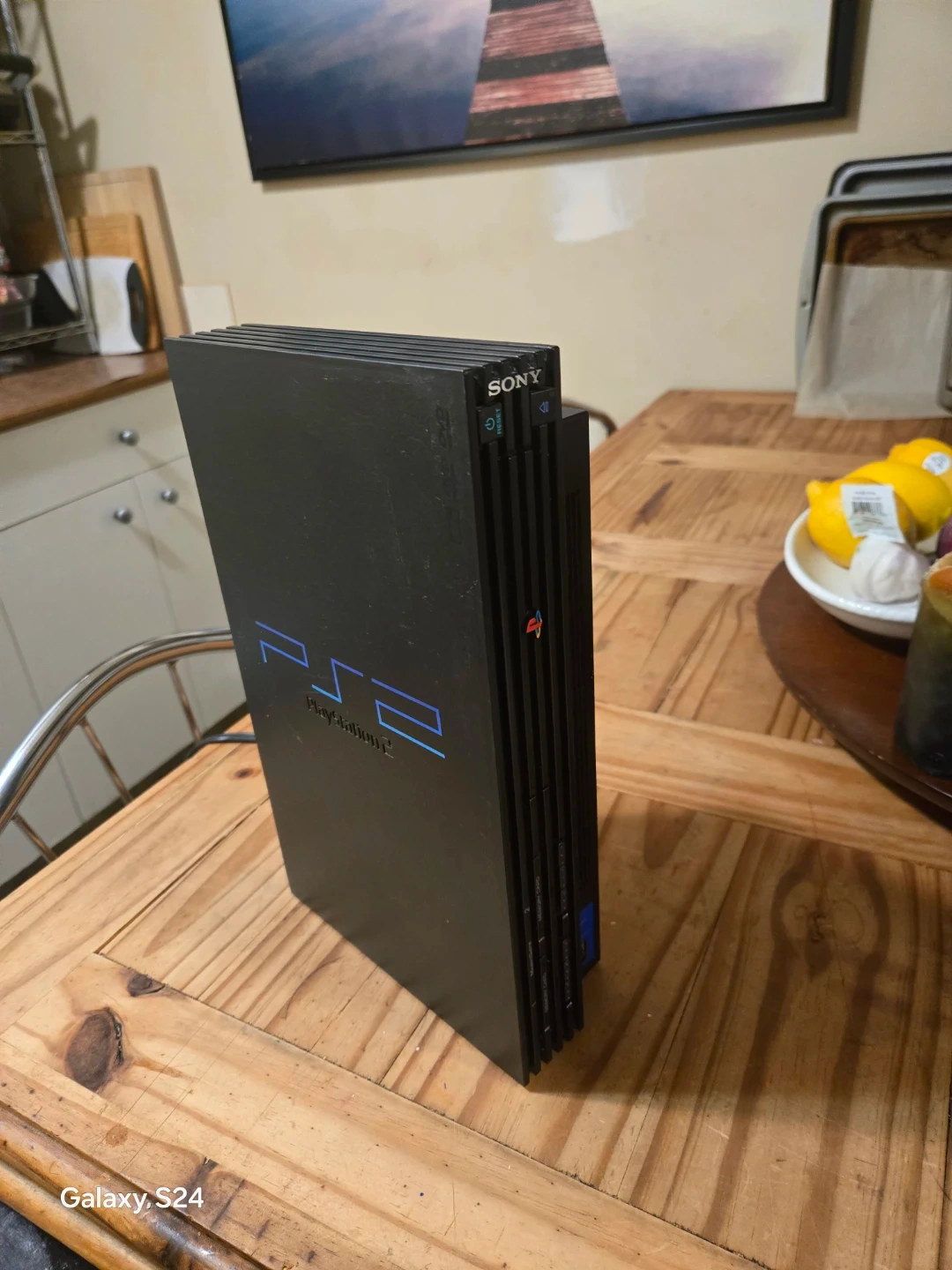 This is a Sony PlayStation 2 console. It comes with two controllers. Play your favourite PS2 games!