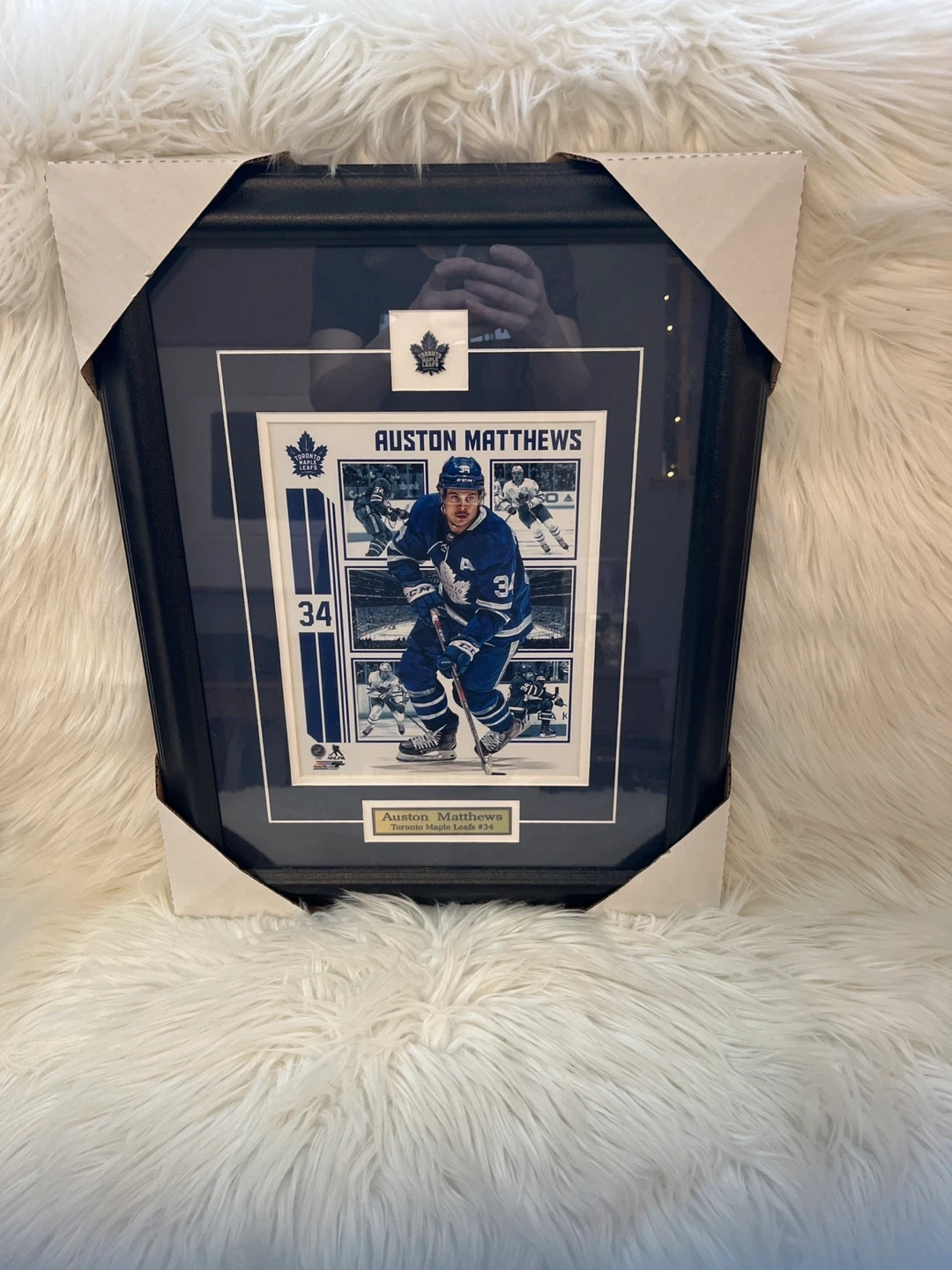 Selling a framed picture of Auston Matthews of the Toronto Maple Leafs #34. It's in great condition and ready to be displayed!