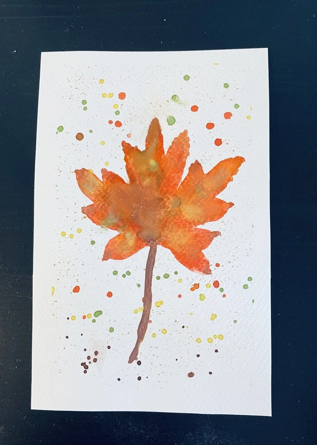 5X7 Watercolor Maple Leaf painted by me. Can be framed or used as a greeting card or a postcard. Buy 5 (5X7) get 1 free. Pick up in Edgemont.