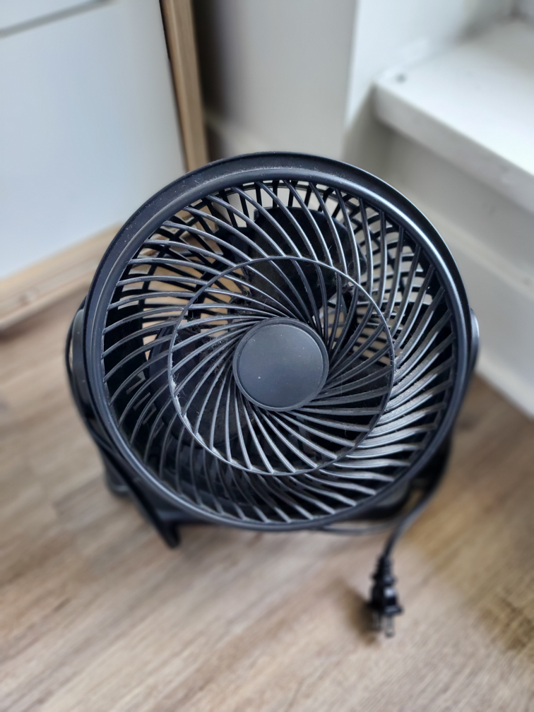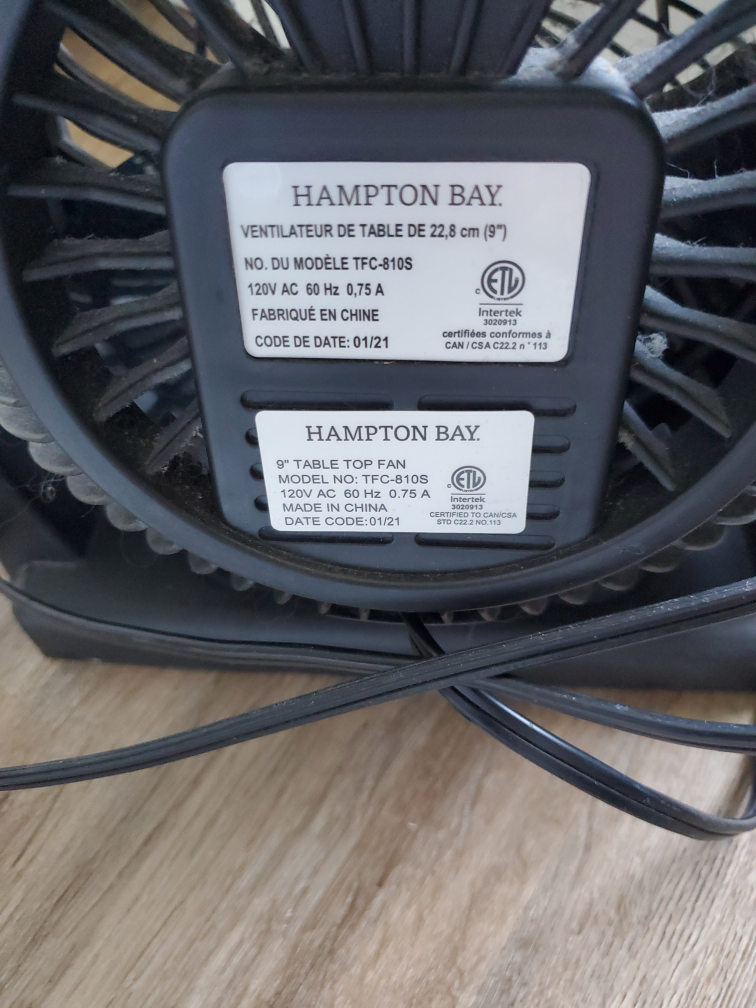 Selling a Hampton Bay 9-inch table top fan. It's black and in used condition but works perfectly. Recently I bought a cordless one so don't need it anymore.